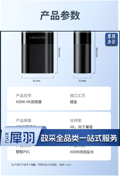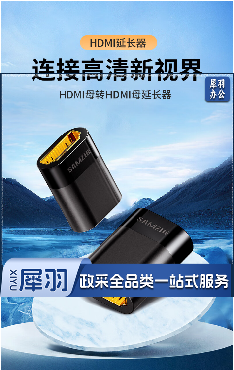 山泽(SAMZHE)HDMI延长器转接头 母对母高清连接头2.0版 HDMI线对接头直通头串联延长线 黑色HFD-02