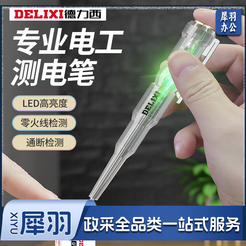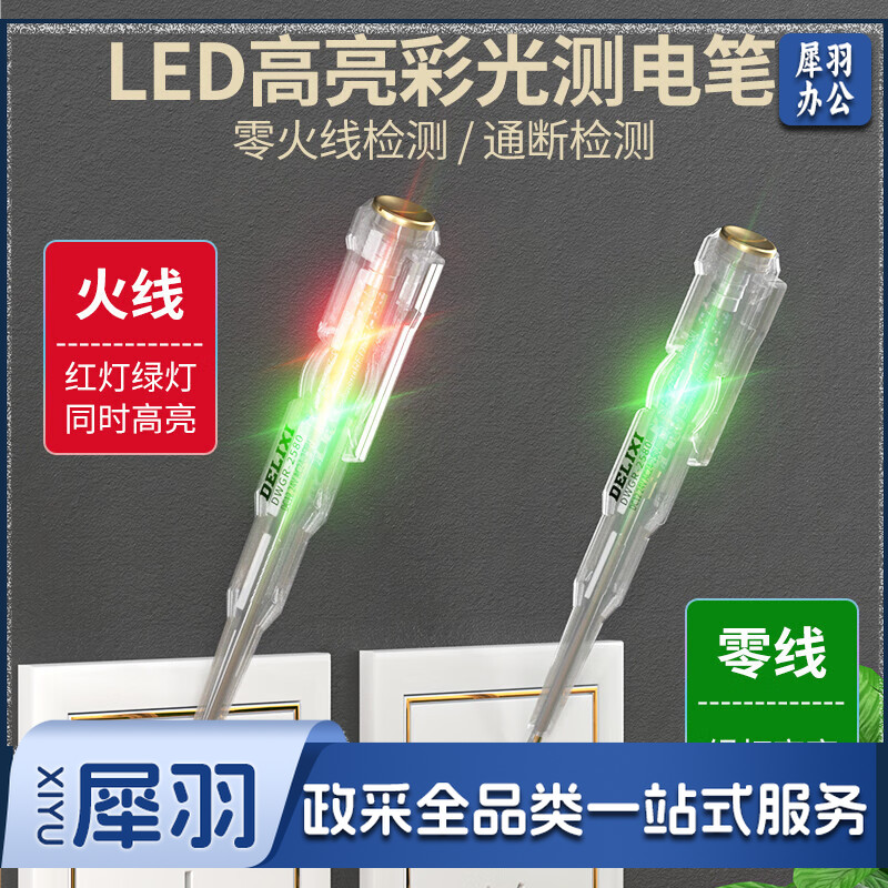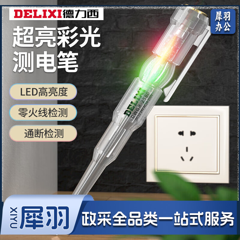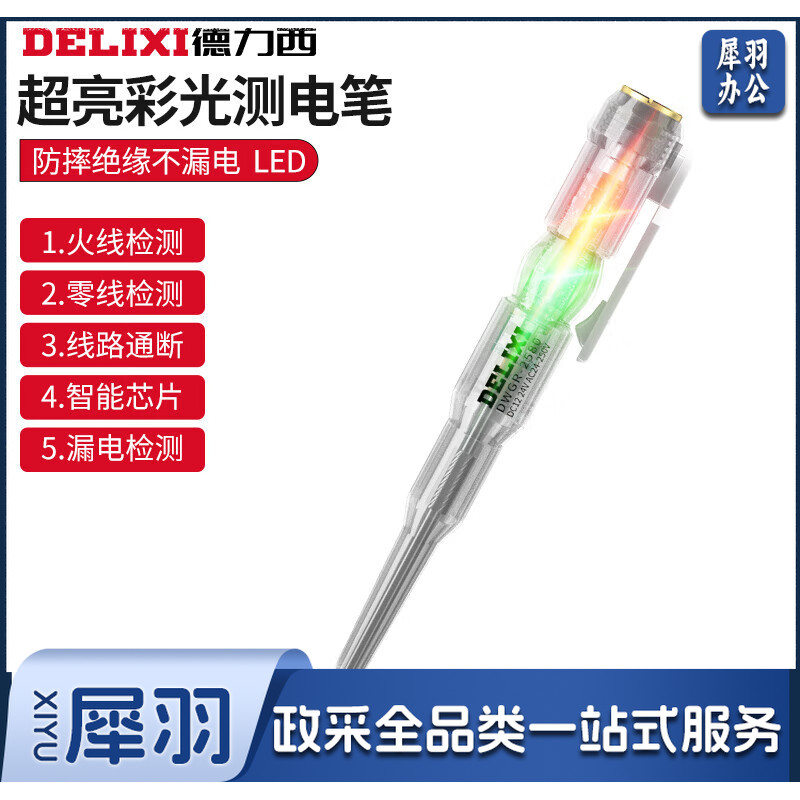 德力西电笔电工专用高亮彩光测电笔测断线智能感应通断验电试电笔手动工具