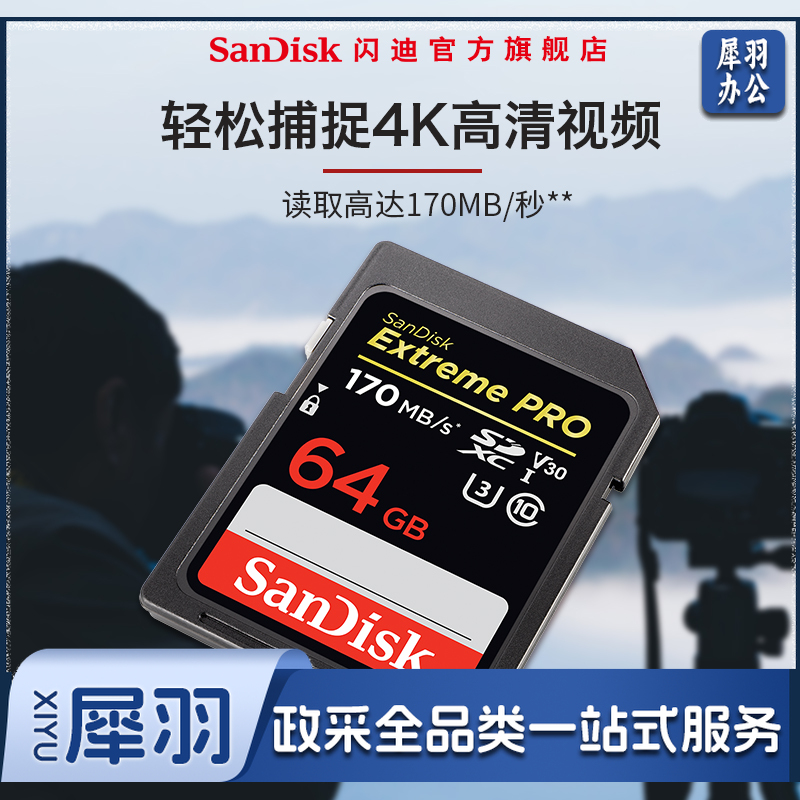 闪迪相机卡 4K高清SD卡 UHS-I微单存储卡微单反摄像储存大卡内存sd卡内存卡 64G sd卡SDXC新升级读速高达200Mb/s