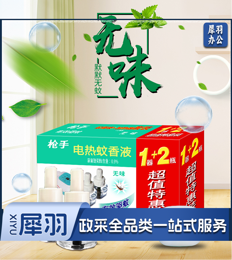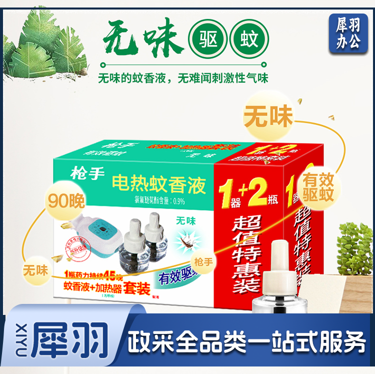 枪手 电热蚊香液套装 无导线 无味 1器+2瓶 无香型 驱蚊液 电蚊香