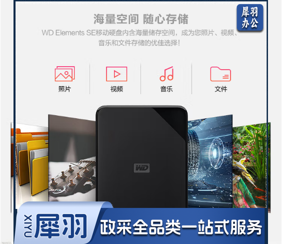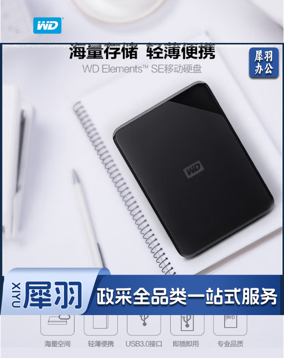 西部数据(WD)WDBEPK0010BBK 移动硬盘 1TB USB3.0 Elements SE 新元素系列2.5英寸 高速传输 轻薄便携
