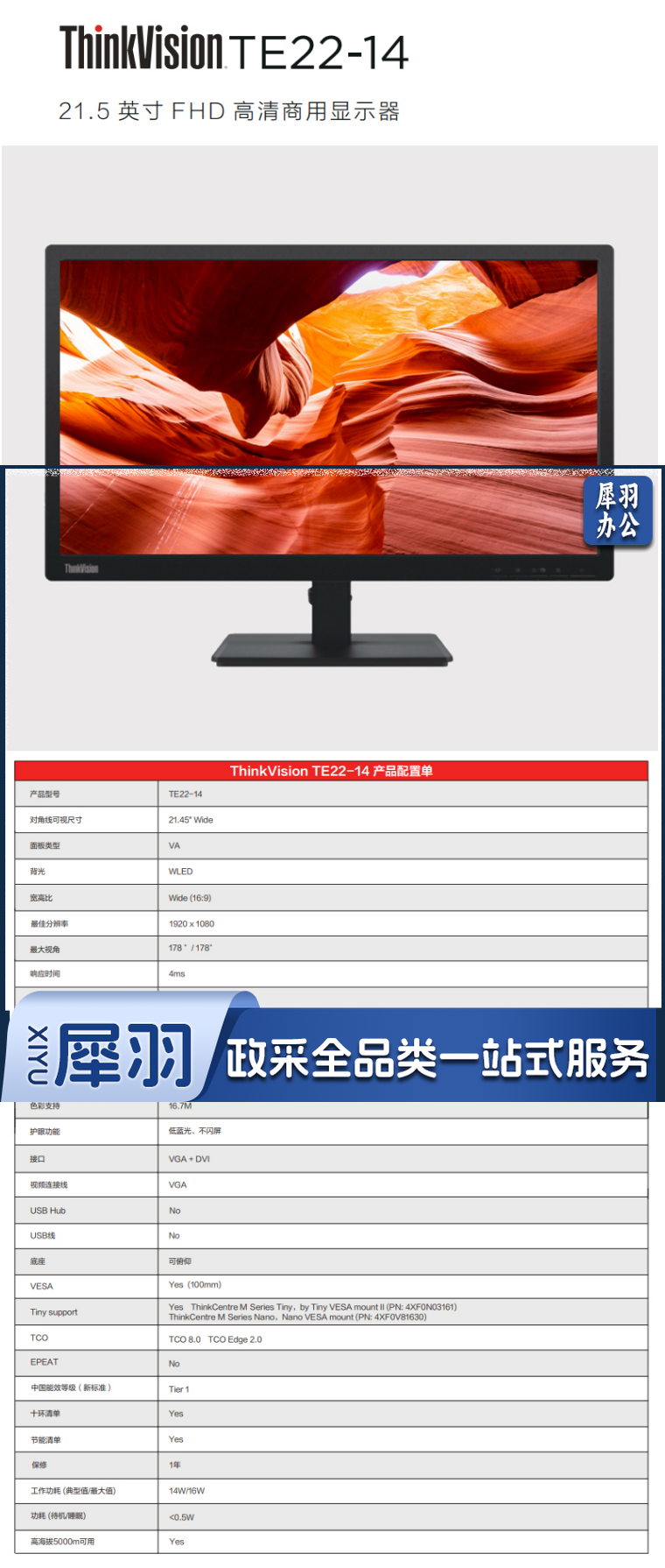 联想/LENOVO TE22-14 21.5寸 电脑显示器 -