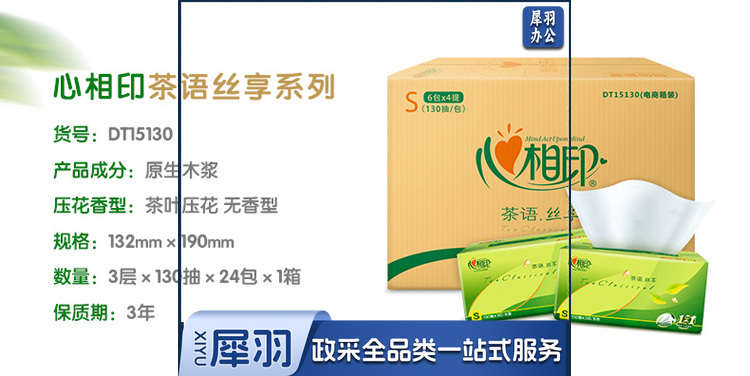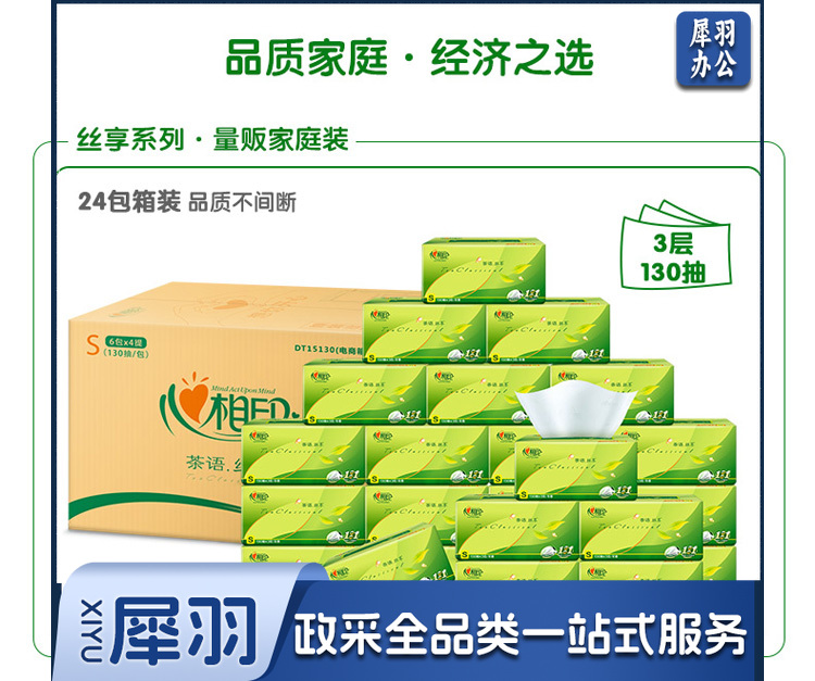 心相印抽纸 茶语丝享系列3层130抽面巾纸*24包纸巾 DT15130