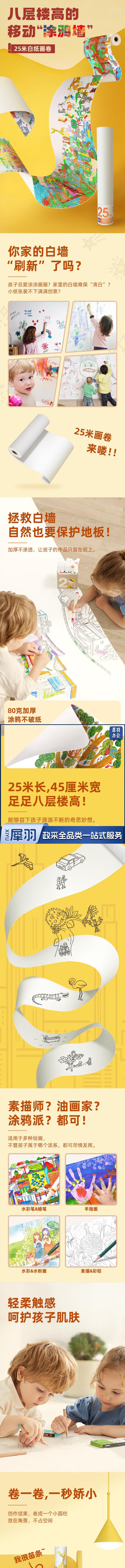 长卷绘画纸儿童涂鸦画纸蒙肯纸画卷纸美术纸 长25米 宽45cm