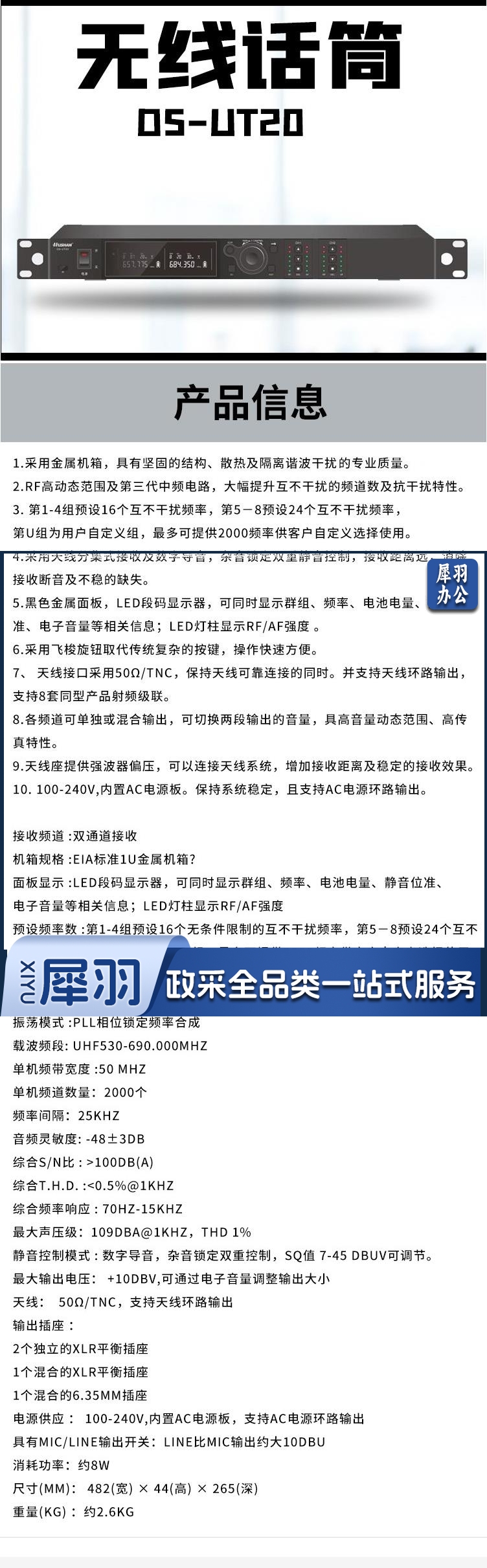 湖山(HUSHAN)DS-UT20 无线话筒 一拖二