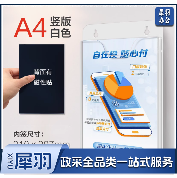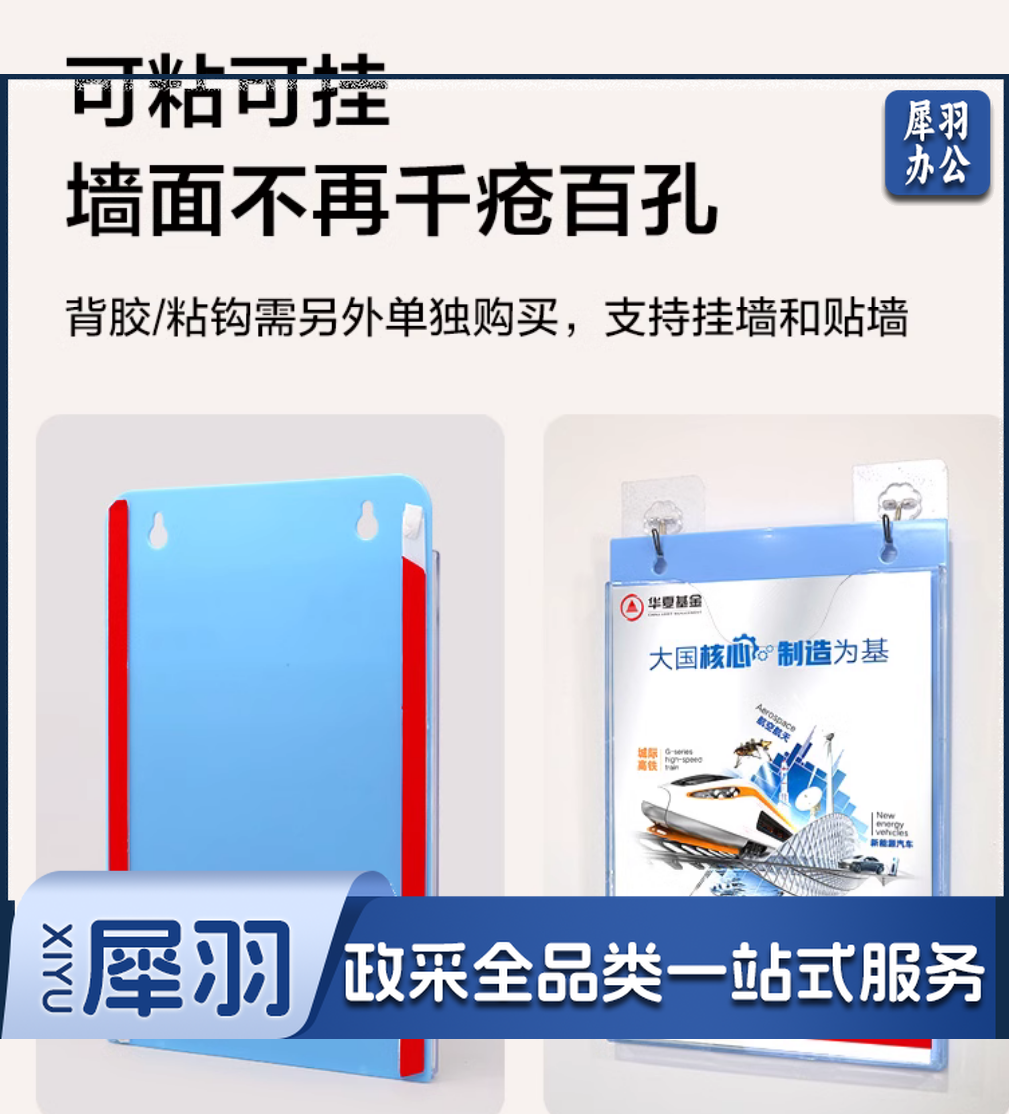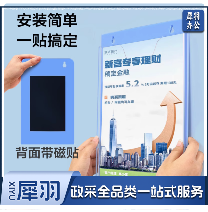 磁性文件收纳上墙 磁吸亚克力墙面文件夹放a4单页插页透明资料架打孔壁挂文件架设备点检表展示牌墙上文件贴
