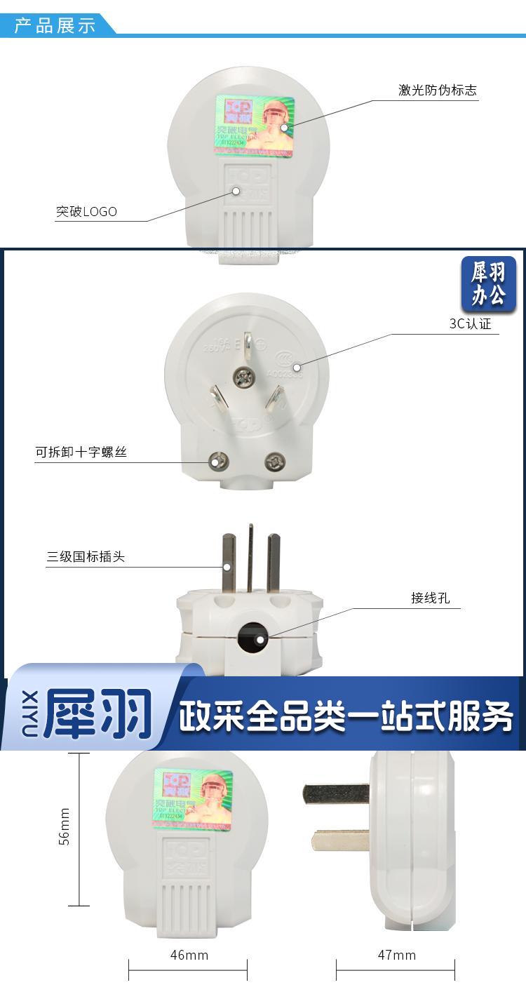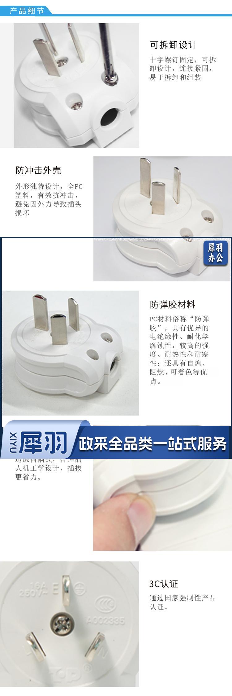插座 三孔16A插头 三脚插孔大功率电器/空调热水器插头可拆卸设计/电工 aigo插座 TZ-ND