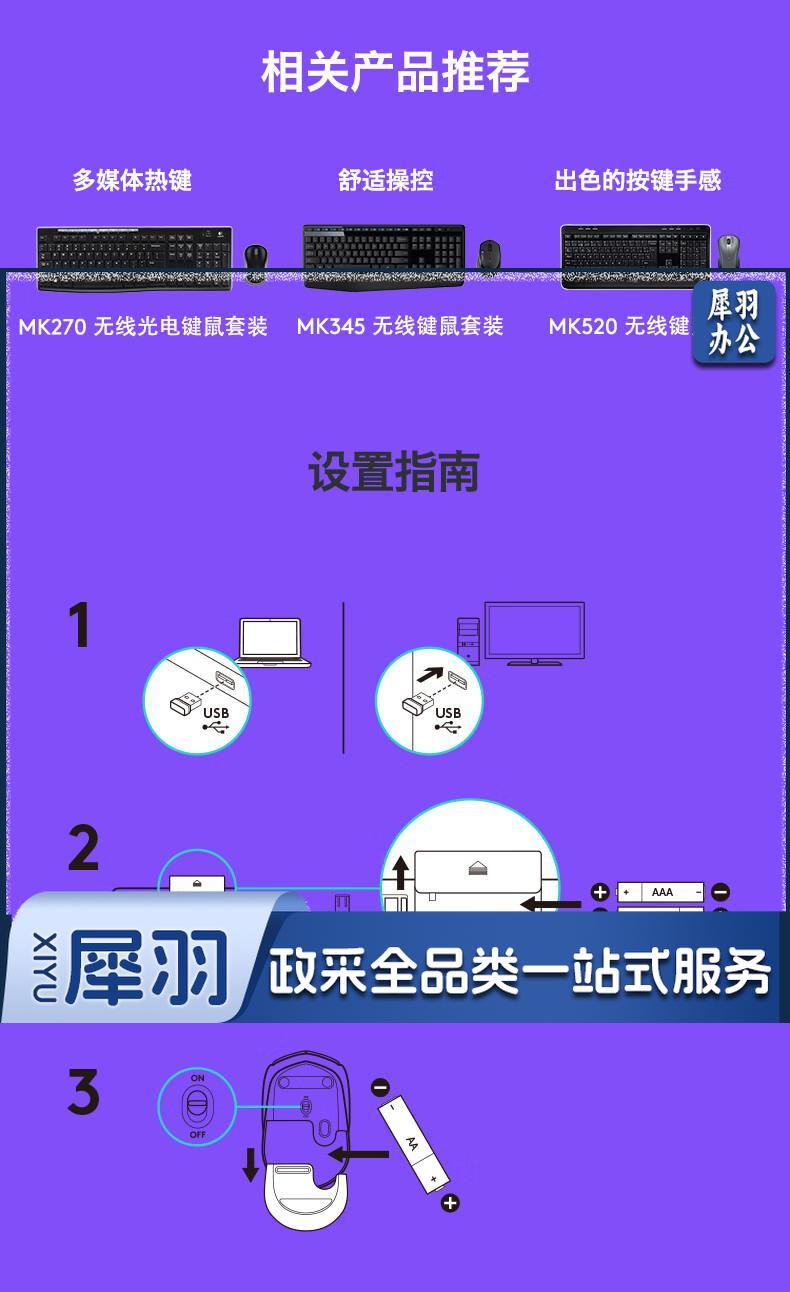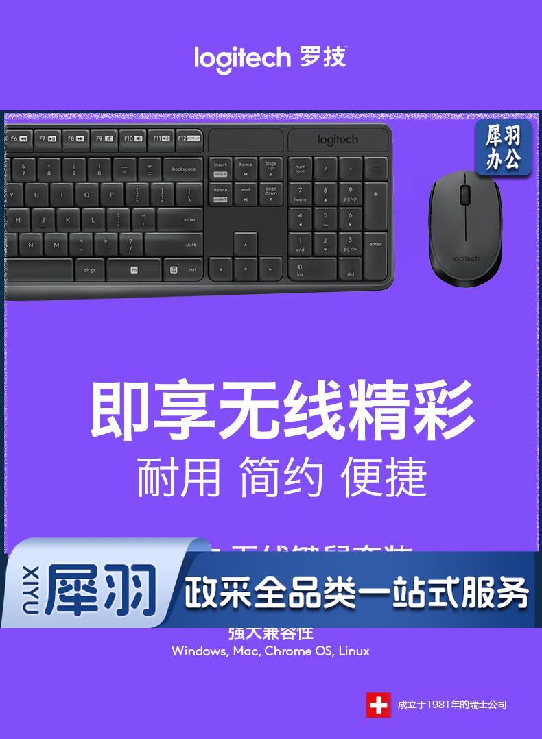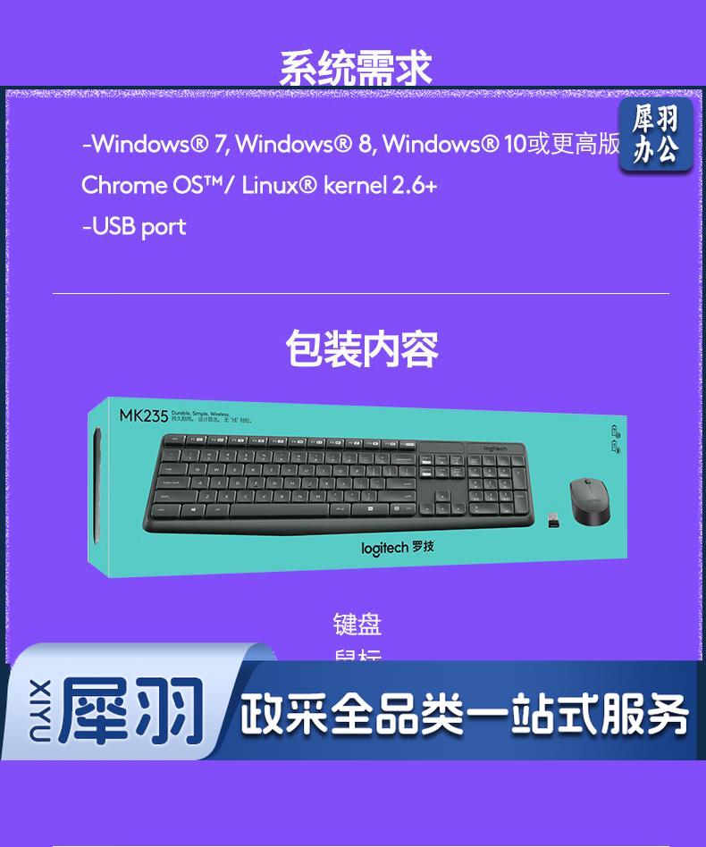 罗技(Logitech) MK235办公键鼠套装 无线键盘鼠标电脑笔记本 防泼溅防褪色防指纹设计 MK235整箱装【8套】