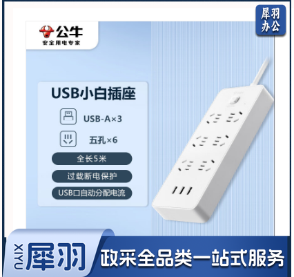 公牛(BULL)超功率保护 新国标公牛小白USB插座/插线板/插排/排插 GNV-UUN153 3usb接口 6孔全长5米
