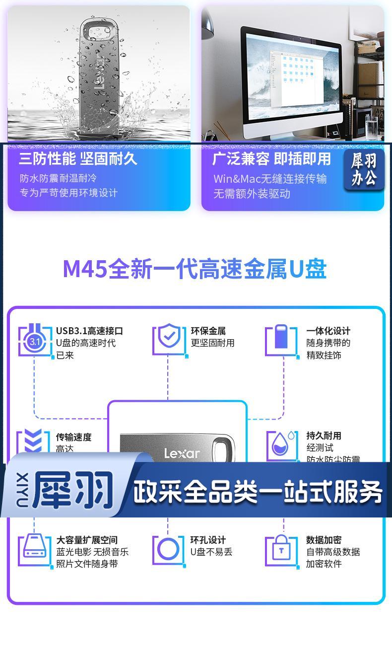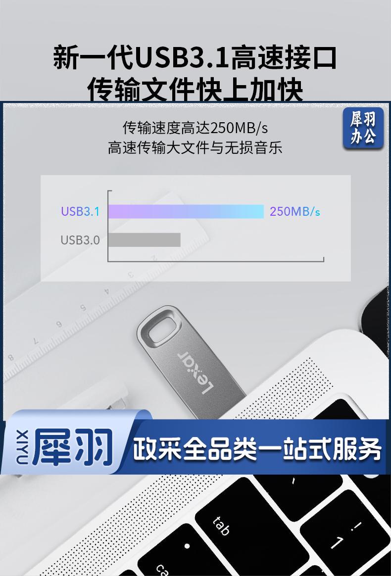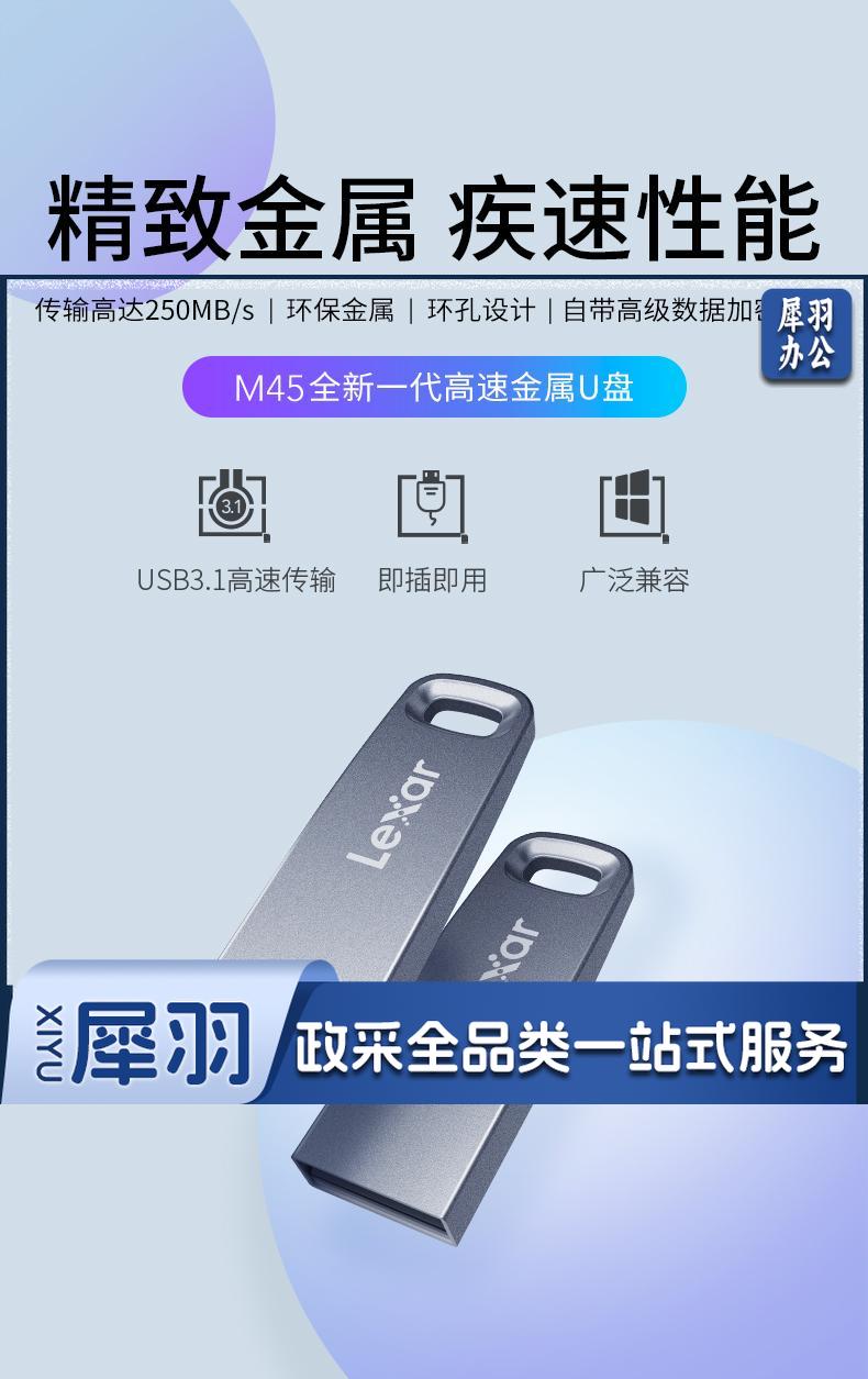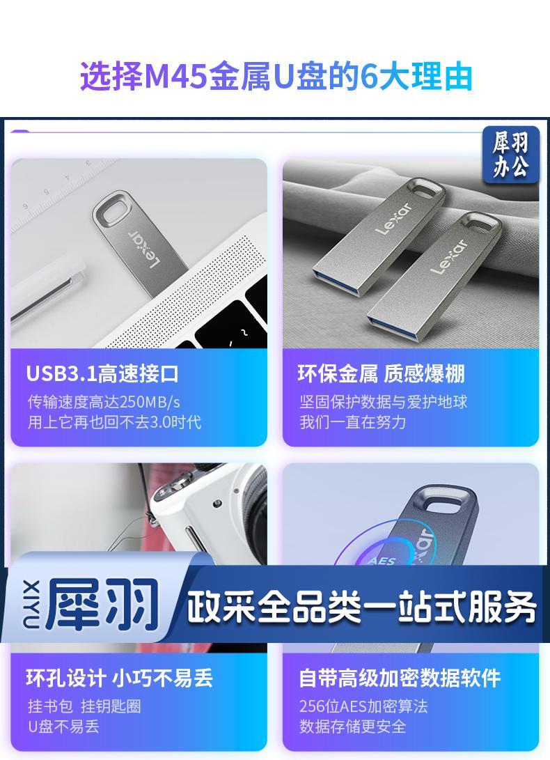 256GB USB3.1 U盘 M45 银色 读速250MB/s 电脑车载迷你优盘 金属小巧办公