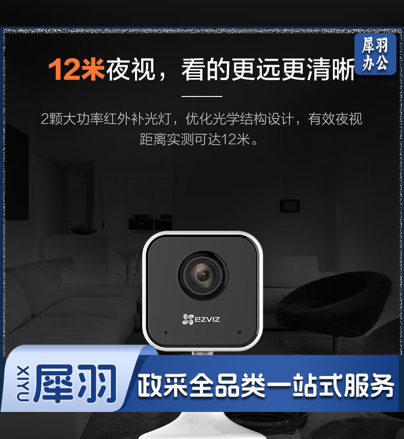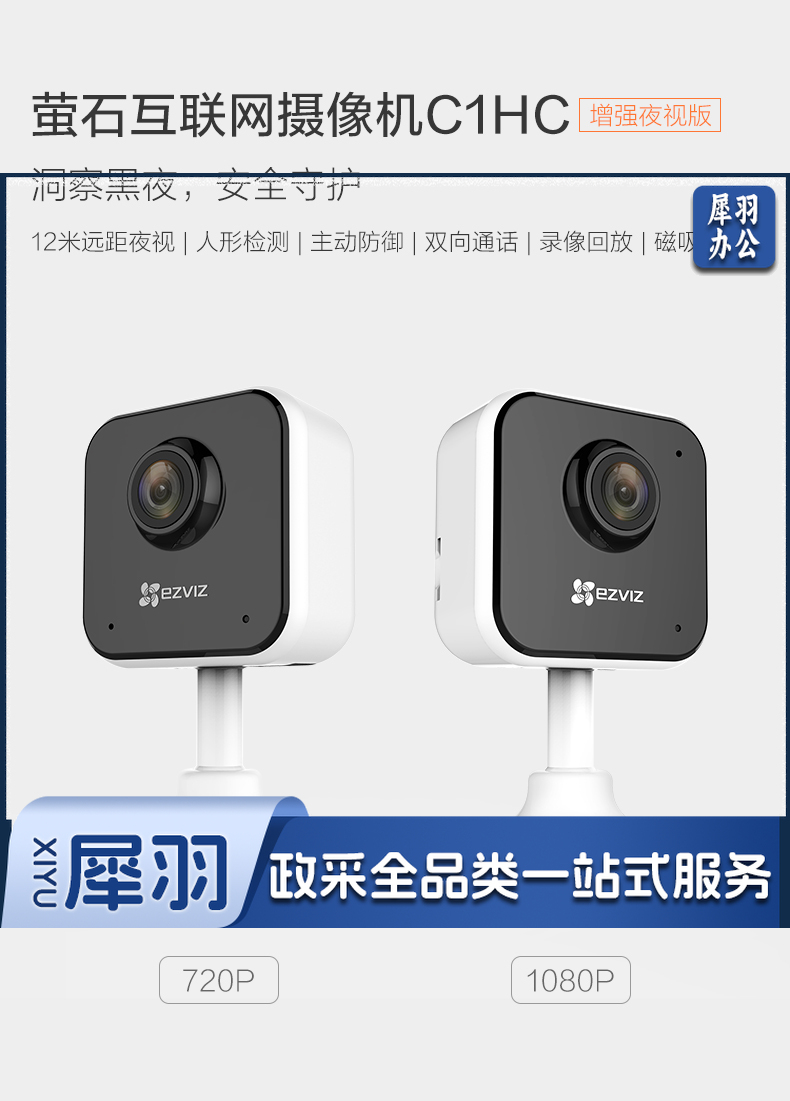 萤石云C1HC监控摄像头无线家用监控器1080P网络高清摄像机手机远程wifi移动侦测夜视12米 C1HC(方款) 官方标配
