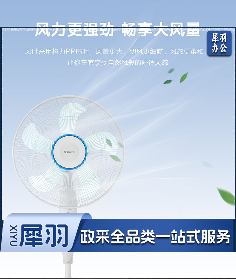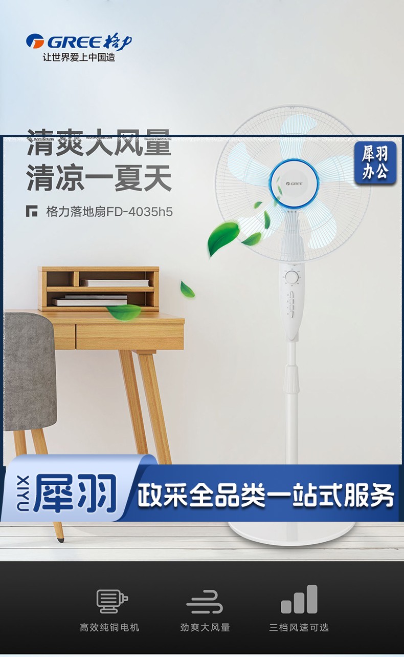 格力落地扇 3档风速 清爽大风量 清凉一夏天 FD-4035h5 白+蓝色 电风扇