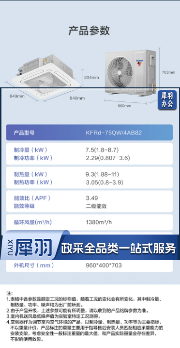 海尔(Haier)中央空调 3匹天花机 吸顶式空调 3p嵌入式空调 全直流变频 KFRd-75QW/4AB82