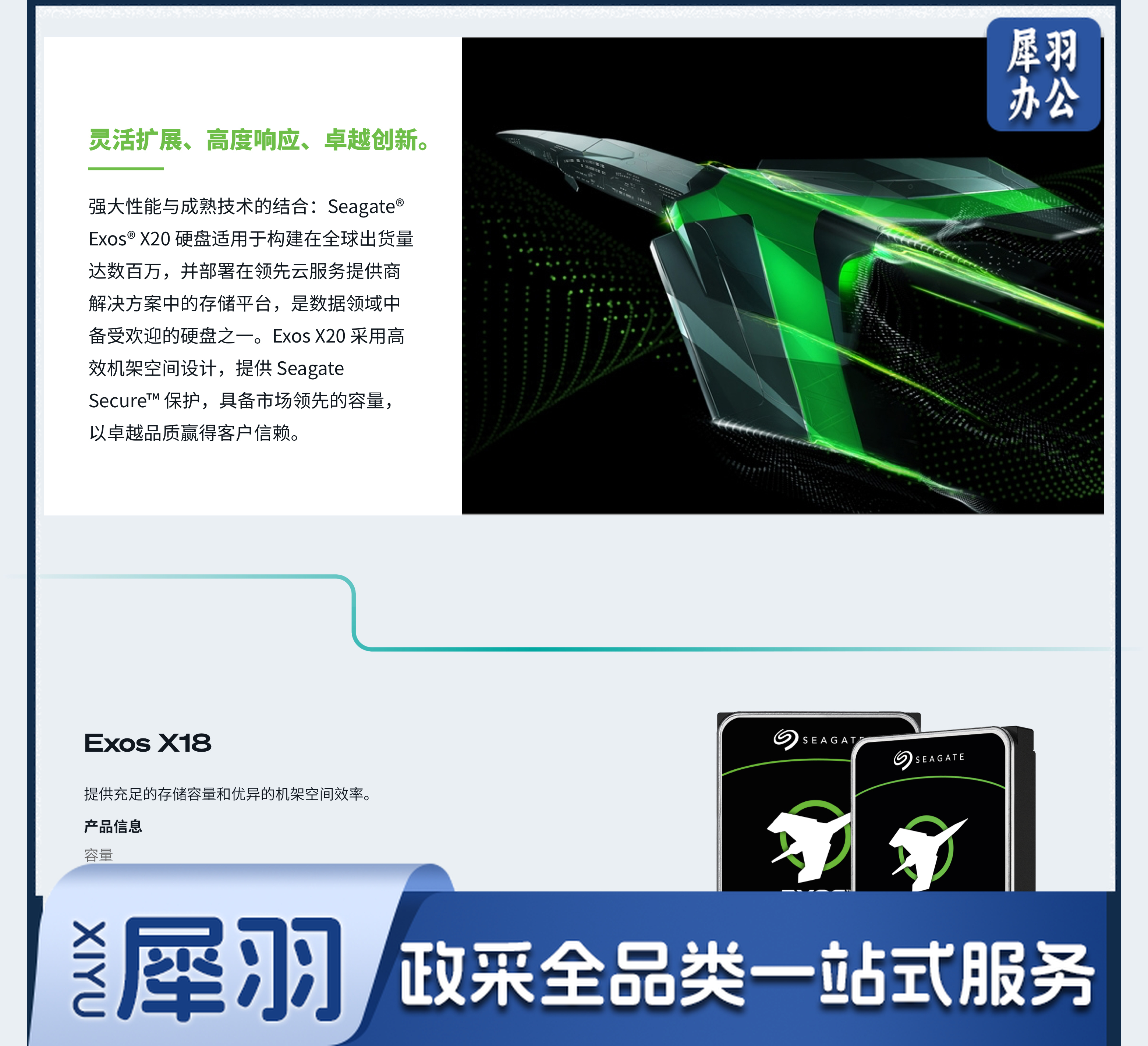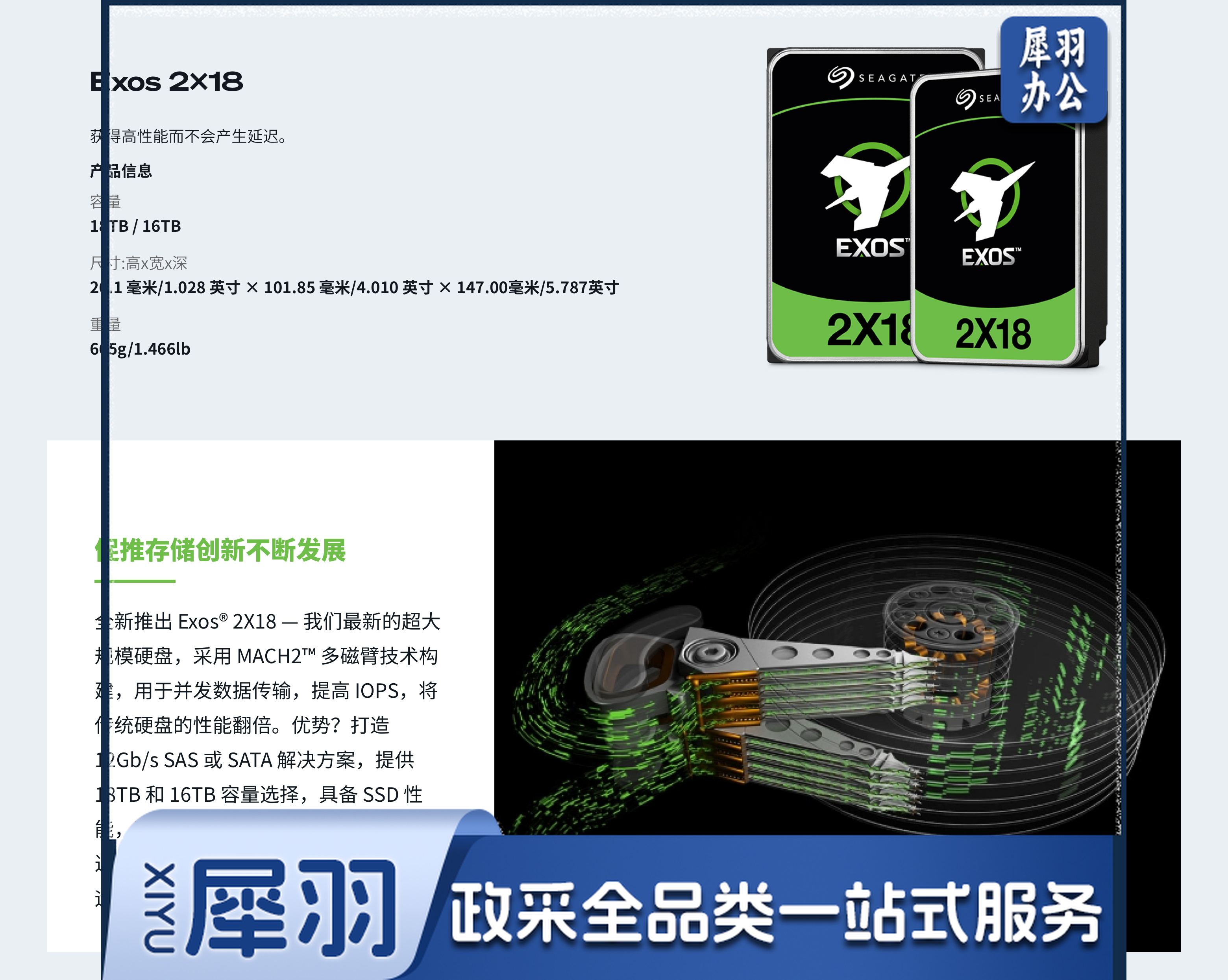 希捷(SEAGATE)企业级硬盘 16TB 256MB 7200RPM CMR垂直 SATA