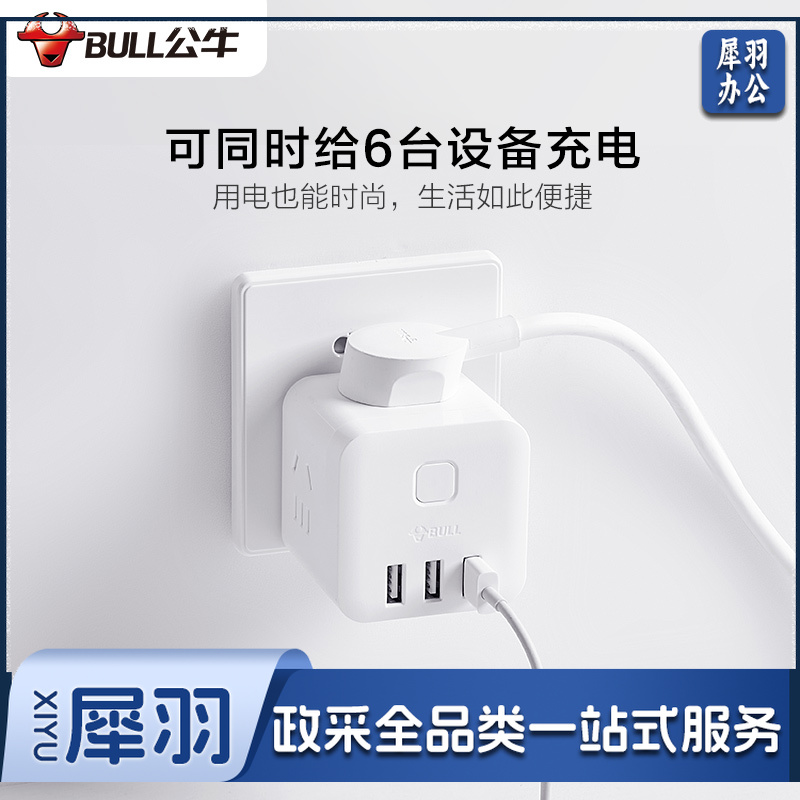 公牛(BULL) 魔方智能USB插座 插线板/插排/排插/接线板/拖线板 GN-U303UW 白色无线魔方USB插座