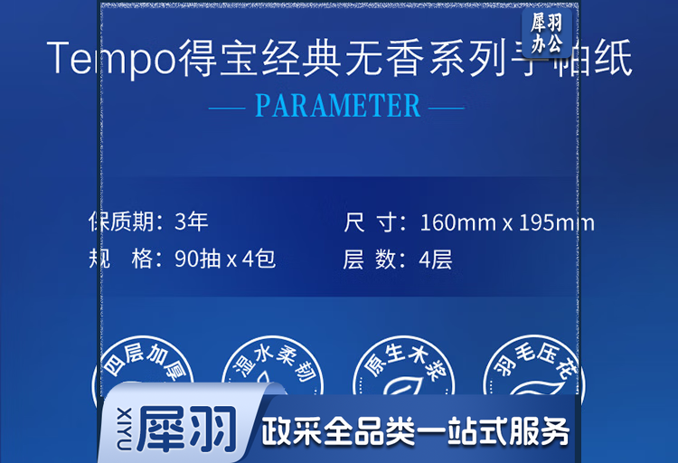 得宝(Tempo)T2275 抽纸天然无香4层90抽3+1包/16提软抽纸巾抽取式纸面巾
