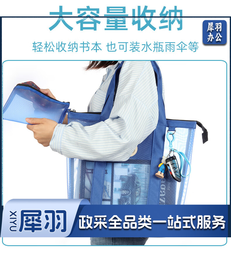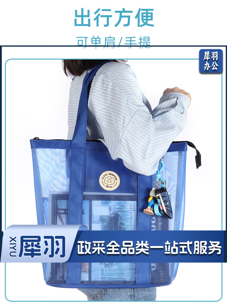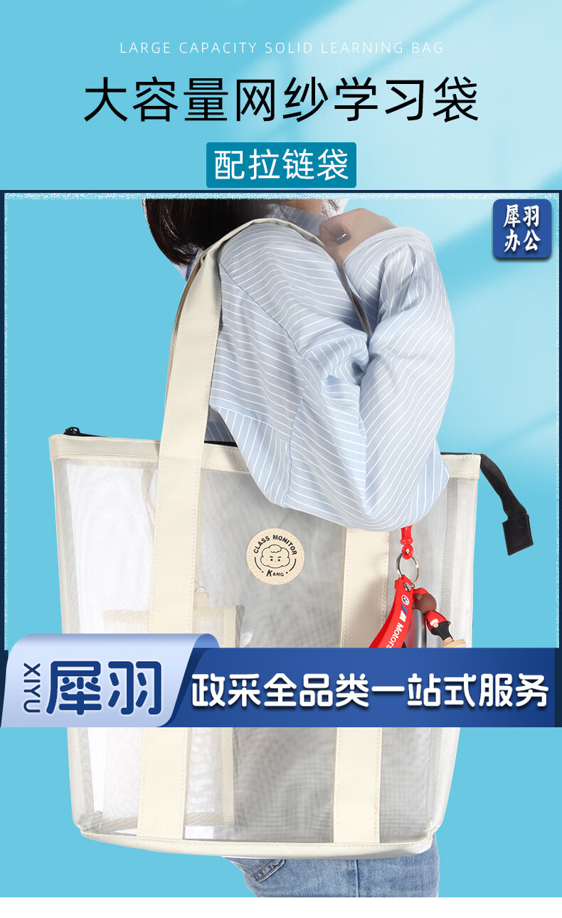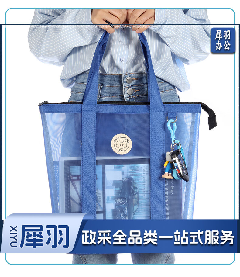枭羽a3美术袋大号文件袋8开8k透明网纱手提收纳袋拉链补习袋大容量学生画画包初中加厚 F6765-颜色随机
