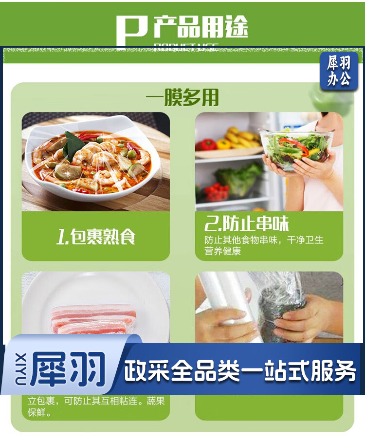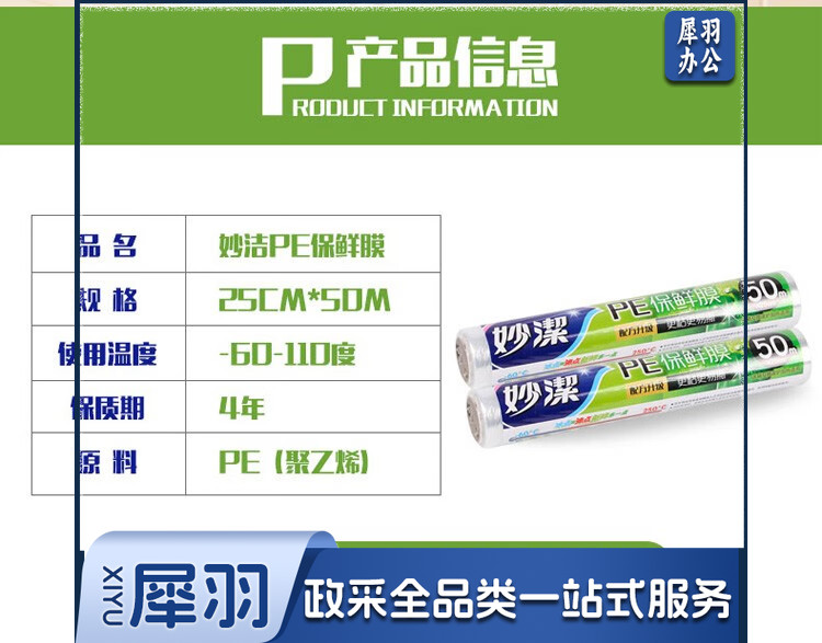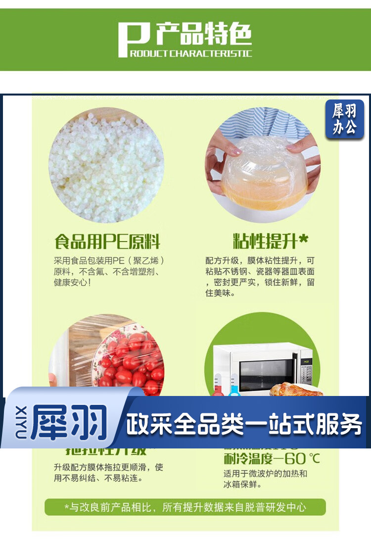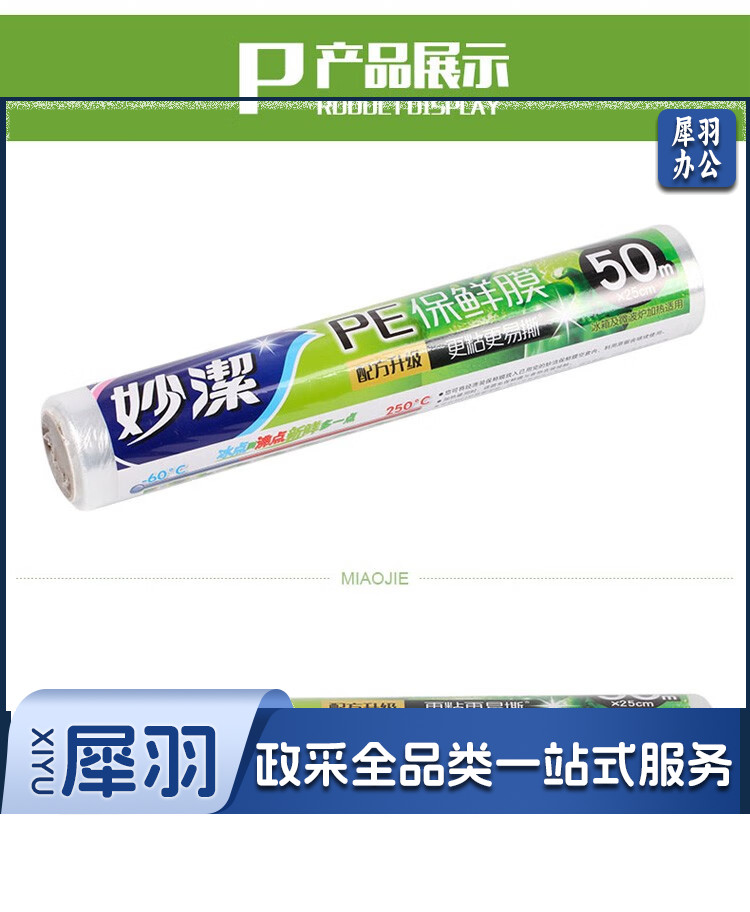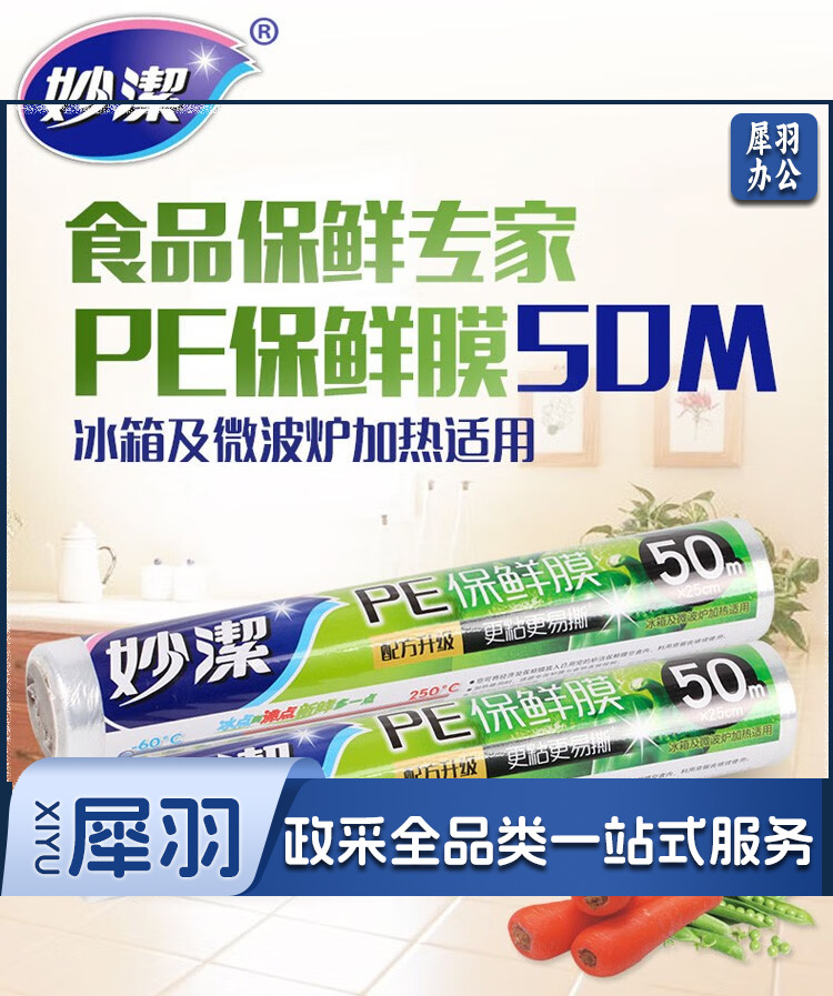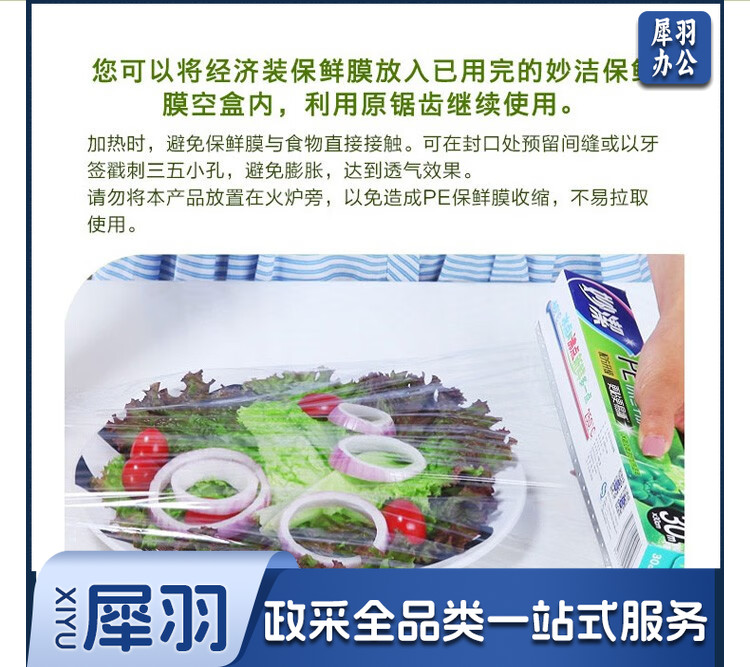 妙洁食品保鲜膜 厨房冰箱微波炉水果蔬菜保鲜 大碗30cm*50米 单位:卷