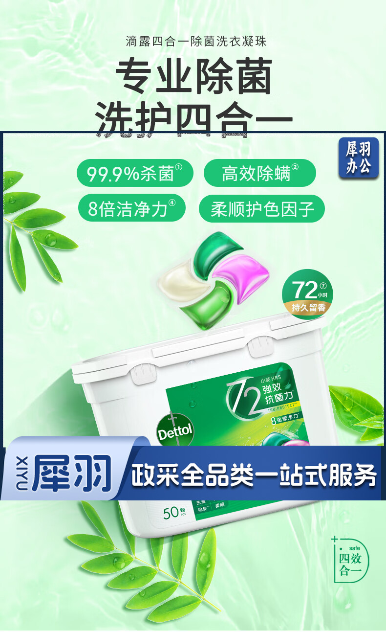 滴露(Dettol)除菌洗衣凝珠四合一50颗/盒