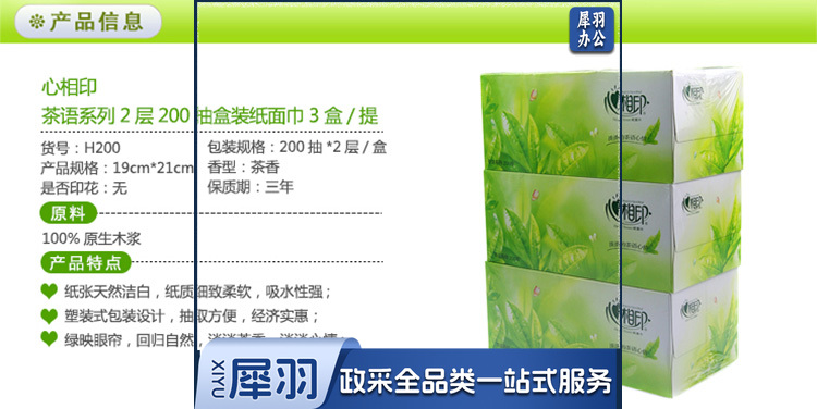 心相印 H200 200抽双层盒装面巾纸 3盒/提