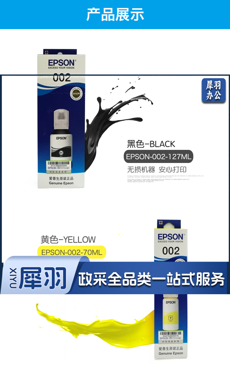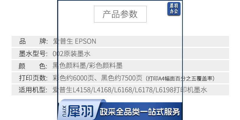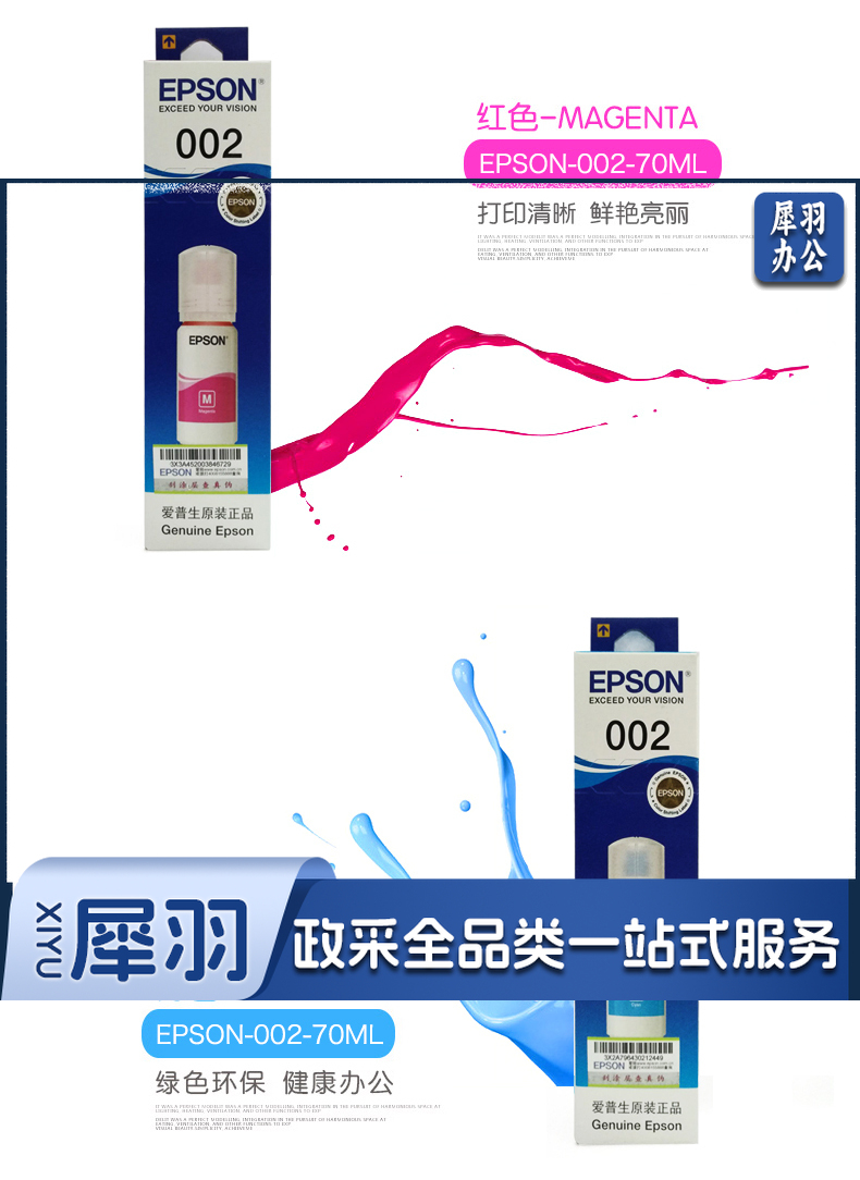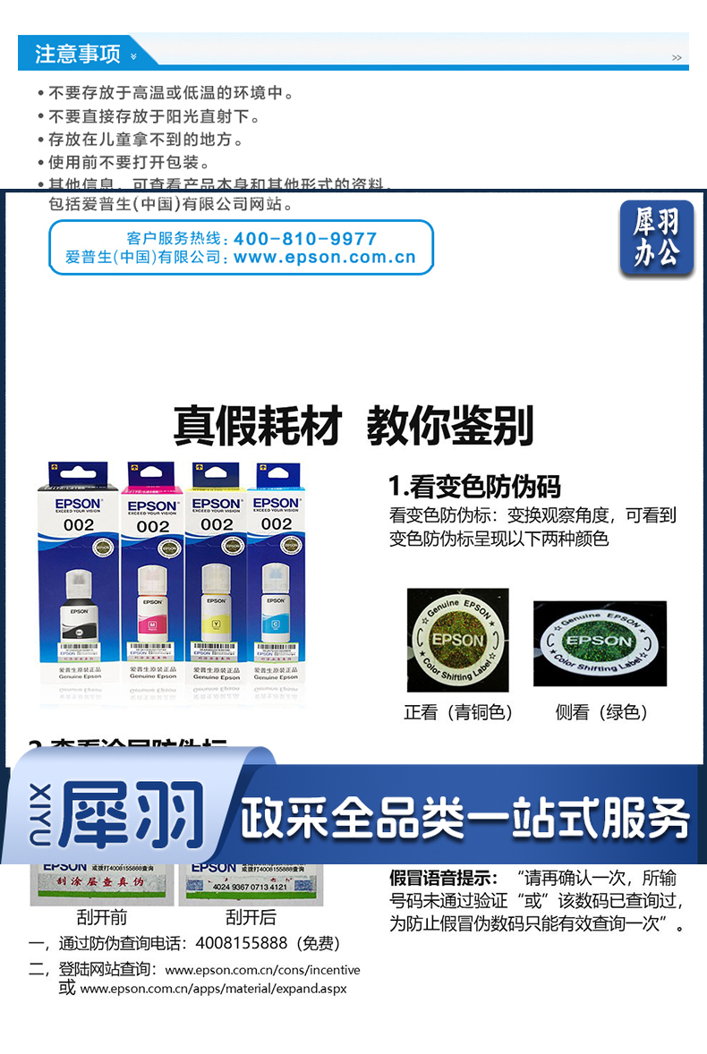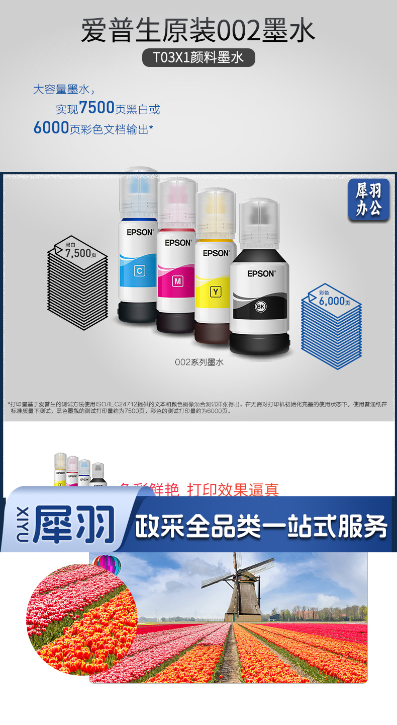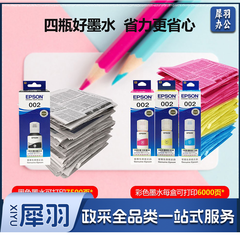 爱普生(EPSON) 002墨水T03X1 L4158 L4168 6168 L6178 L6198 4只装(1黑3彩) 自营 单位:套