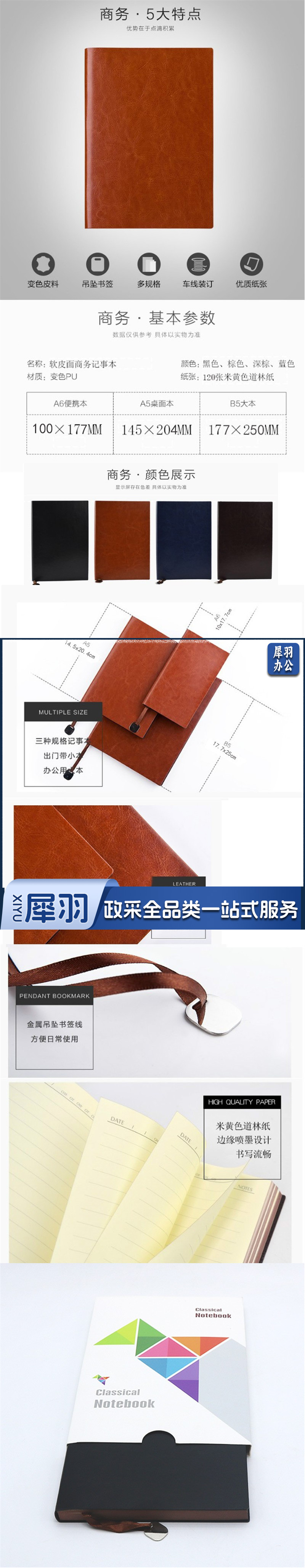 勤得利 208-48 A6软皮面复古大号工作本会议记录吊坠本学生记帐黑色奥杰