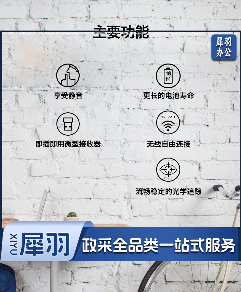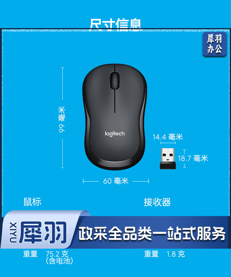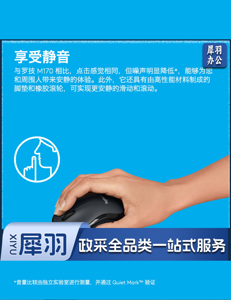 罗技(Logitech)M220 鼠标 无线鼠标 办公鼠标 静音鼠标 对称鼠标 灰黑色 带无线2.4G接收器 单位:个