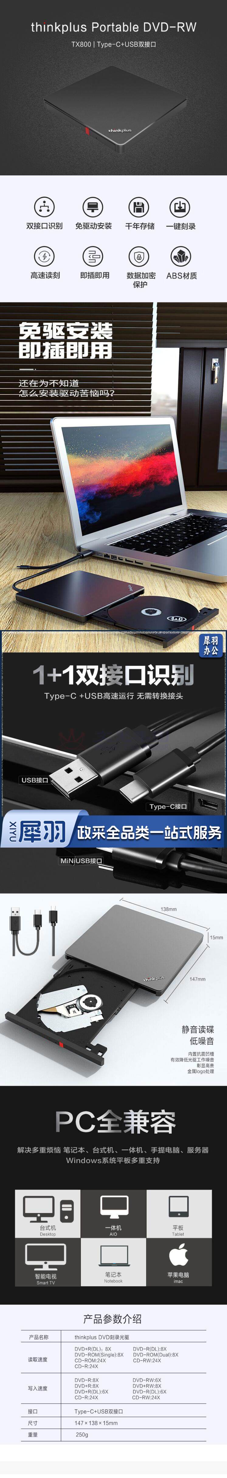 联想(Lenovo)TX800 外置光驱 超薄外置DVD刻录机