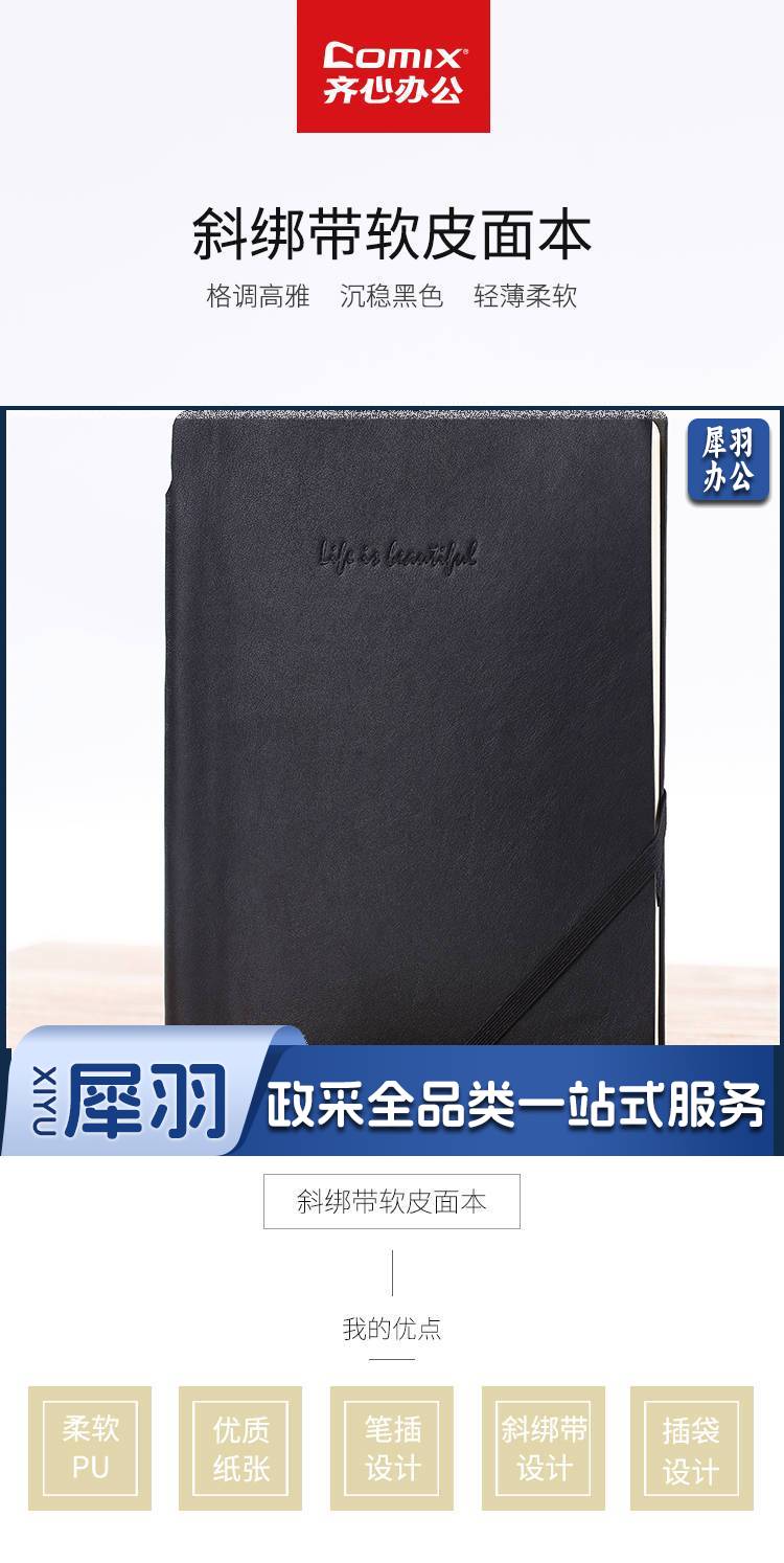 齐心(Comix) 软皮面创意斜绑带文具笔记本子/记事本/日记本 A5 98张 颜色随机 ECC5851