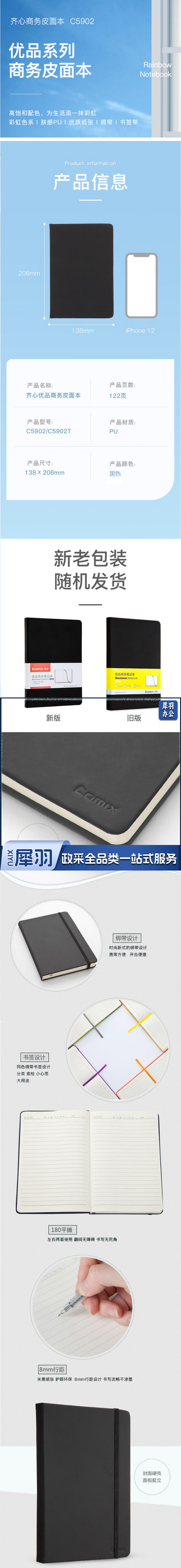 齐心 C5902 皮面笔记本 122张A5 黑色