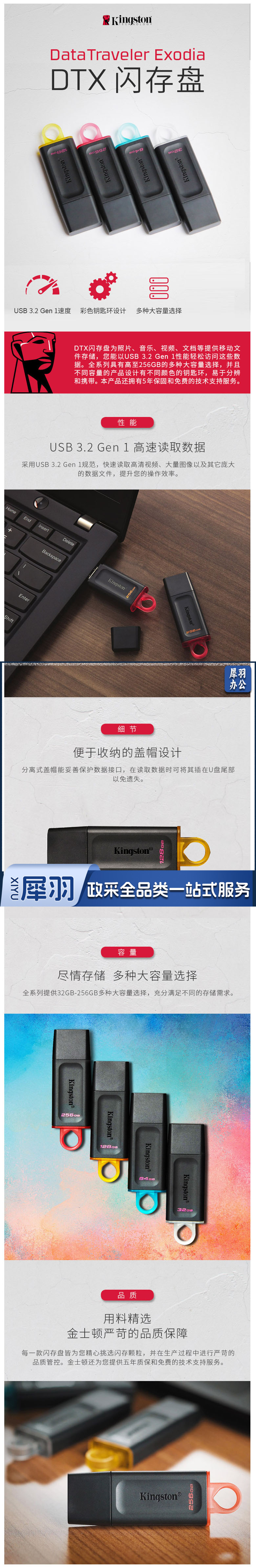 金士顿(Kingston)DTX/256GB U盘 USB3.2 Gen 1 DTX 256GB 黑色