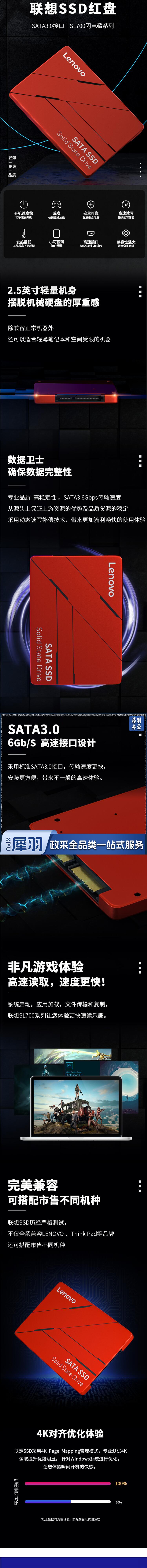 联想 120GB SSD固态硬盘SATA3.0接口SL700系列(红盘)