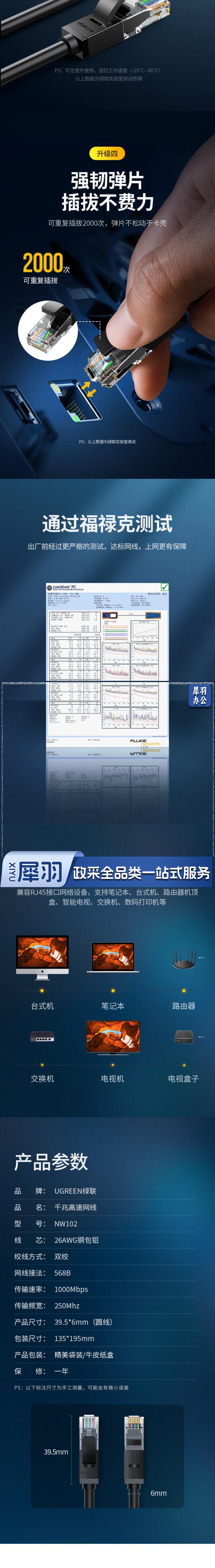 绿联 8米线长 六类网线 千兆高速宽带线 CAT6类网络跳线 单位:条