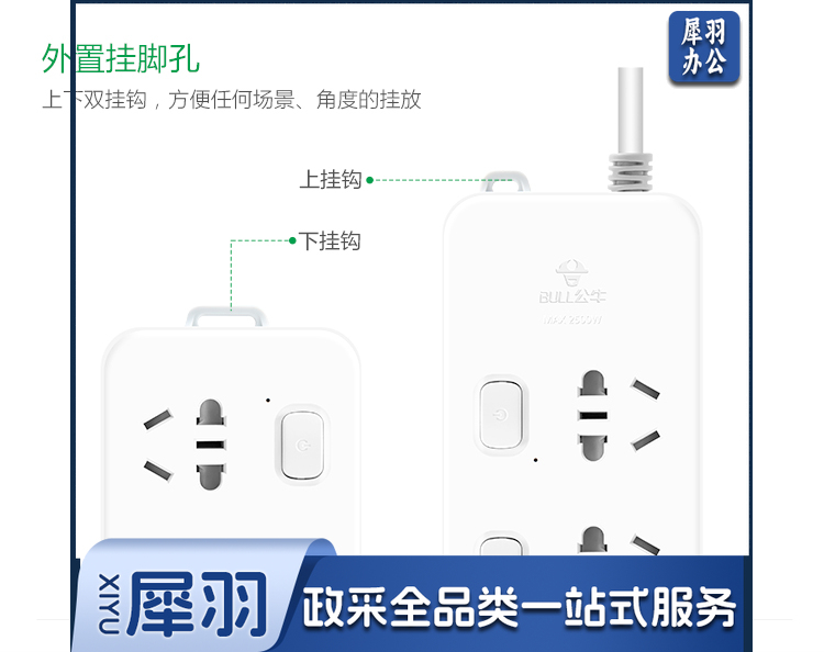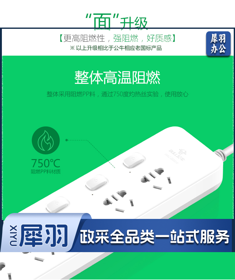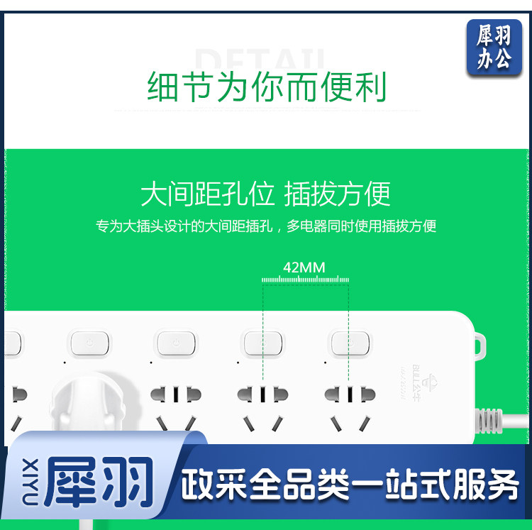 公牛(BULL)GN-313 新国标插座 6位分控全长5米 单位:个