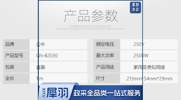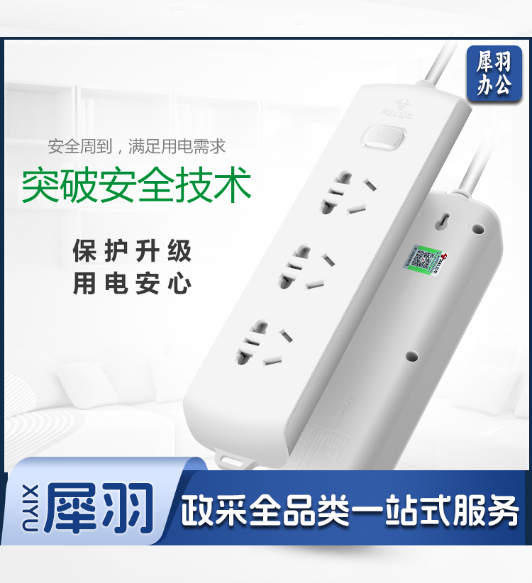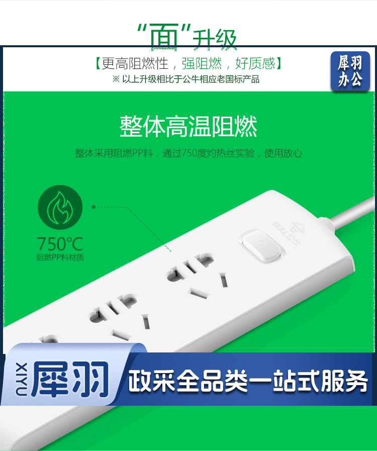 公牛(BULL)新国标插座/插线板/插排/排插/接线板/拖线板 3位总控全长1.8米 GN-B2030