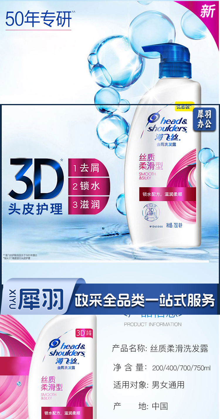海飞丝 去屑丝质柔滑性洗发水 750ML