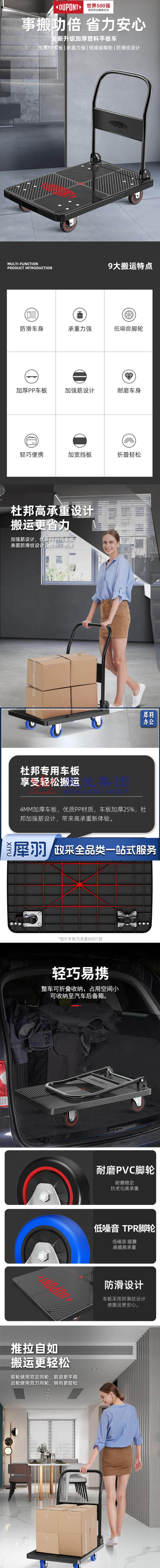 杜邦 90*60 承重600斤平板小推车折叠手拉货车塑料搬运拉杆拖车