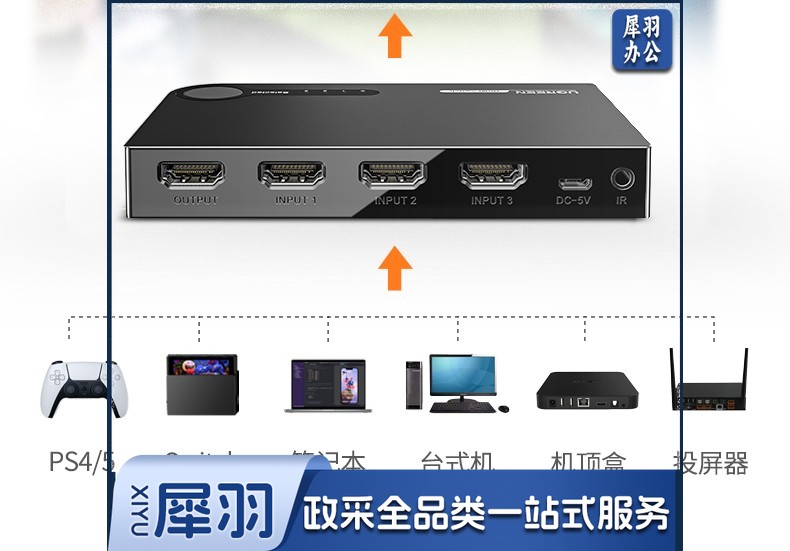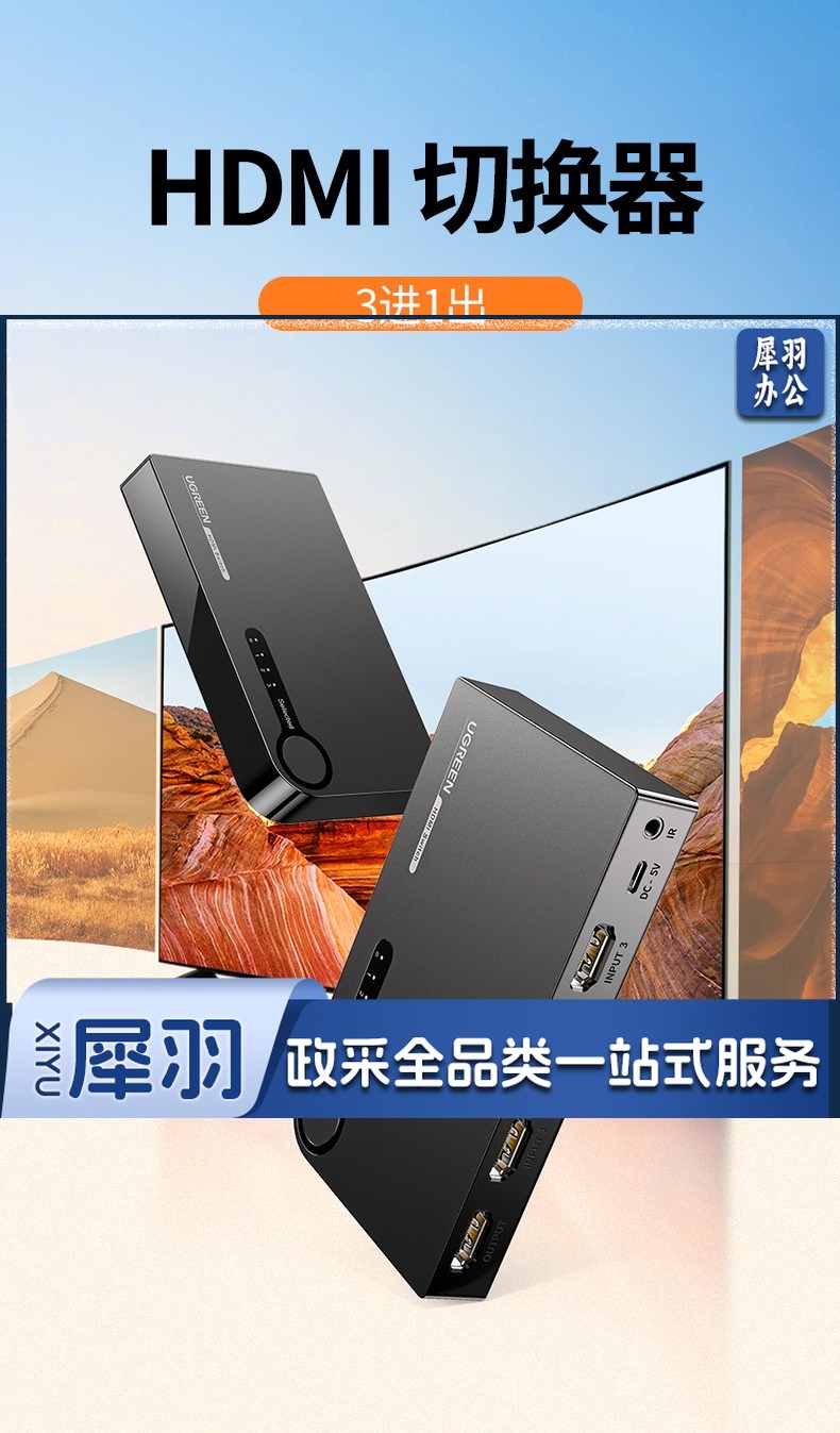 绿联 HDMI切换器三进一出 3进1出 4K高清视频切屏器 笔记本电脑机顶盒接电视投影仪共享显示器 三进一出 40234