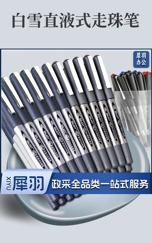 白雪(snowhite)直液式走珠笔 0.5mm子弹头中性笔学生考试签字笔水笔 黑色 办公用品12支/盒PVR-155