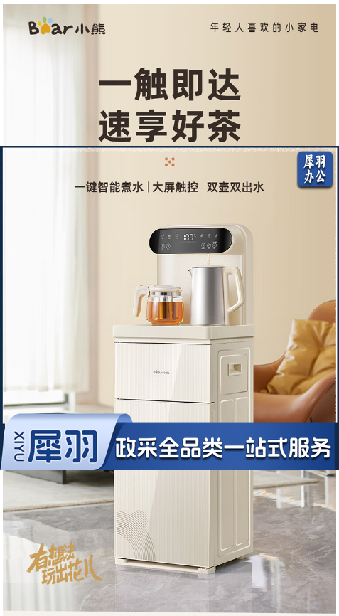 小熊(Bear)茶吧机 饮水机家用高端客厅遥控智能全自动双出水烧水一体机直饮机下置式饮水机温热款CBJ-F12L1