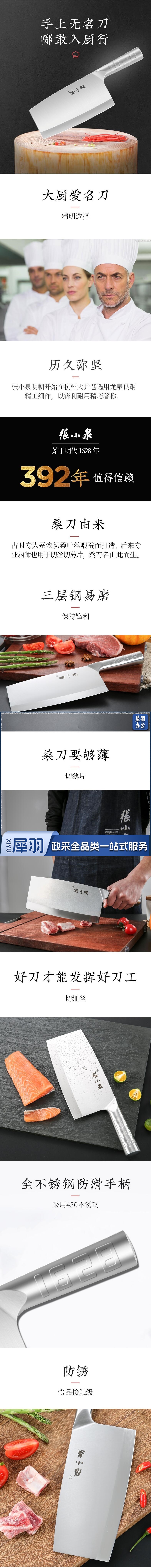 张小泉菜刀 厨房刀 家用厨师桑刀 切片刀 斩切刀 不锈钢菜刀