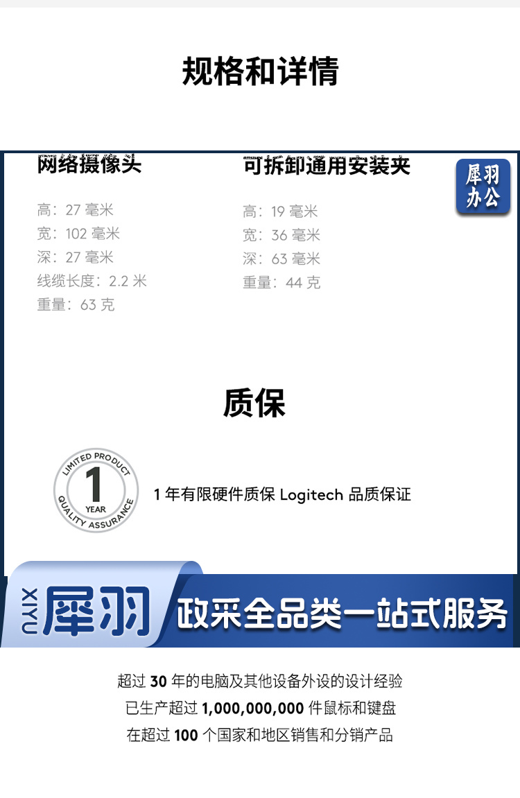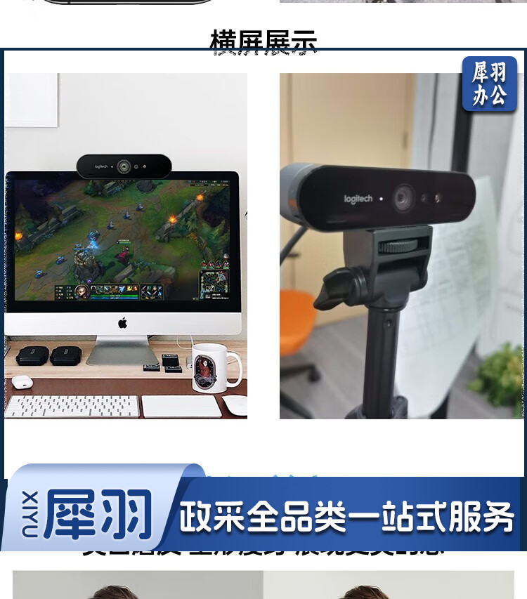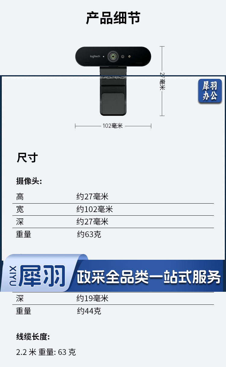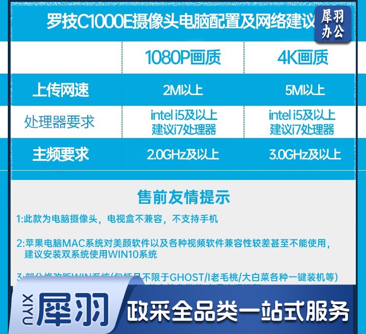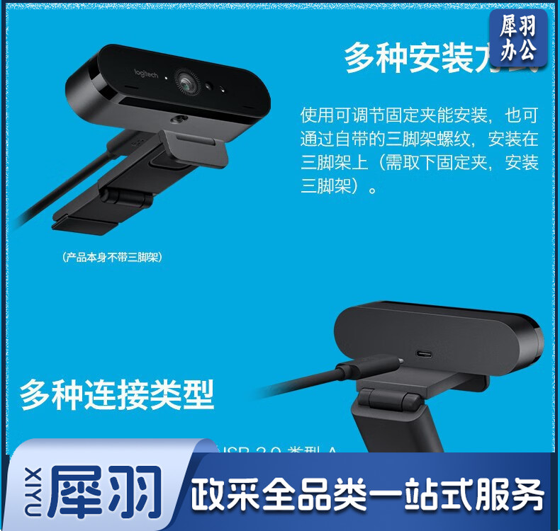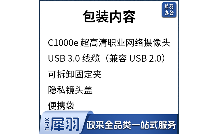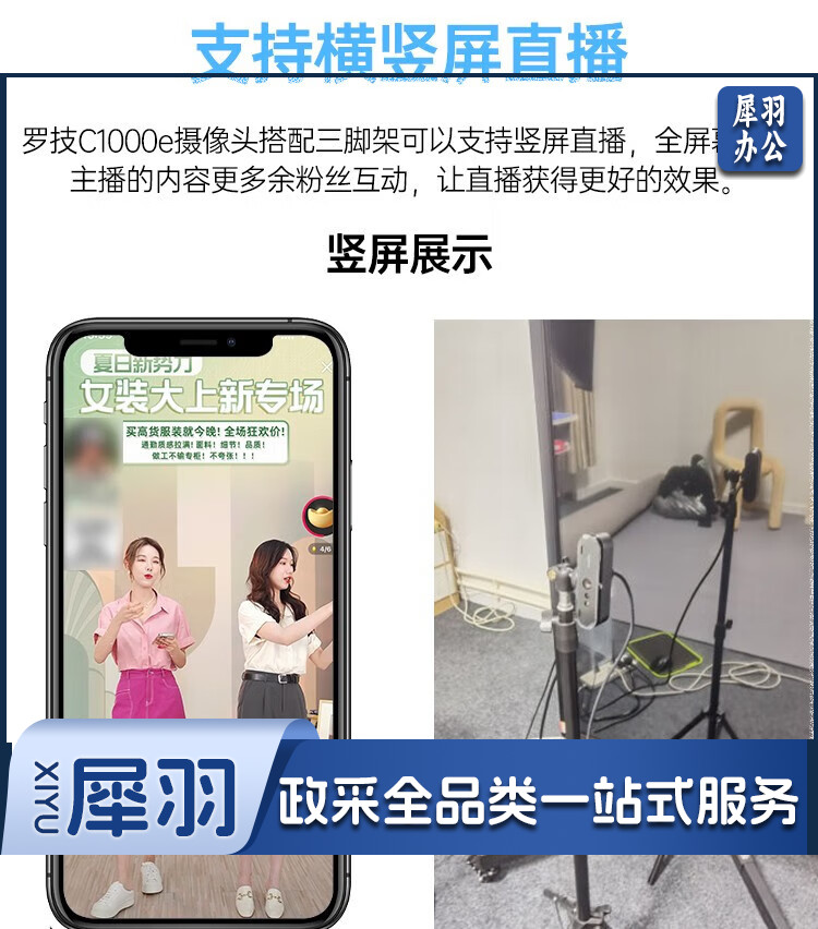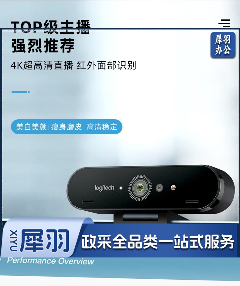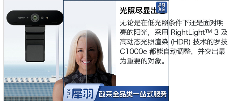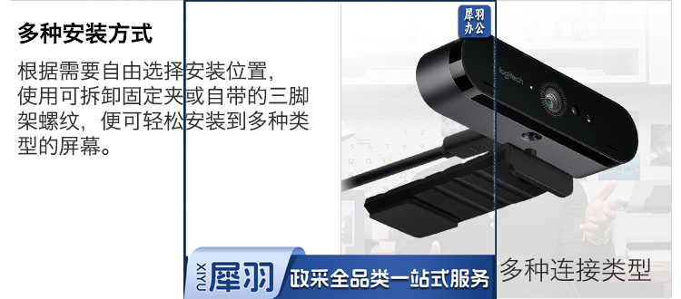 罗技(Logitech) C1000e/s 4K高清网络直播摄像头广角家用视频台式电脑摄像头内置麦克 C1000e 4K摄像头+无线领夹麦克风套装