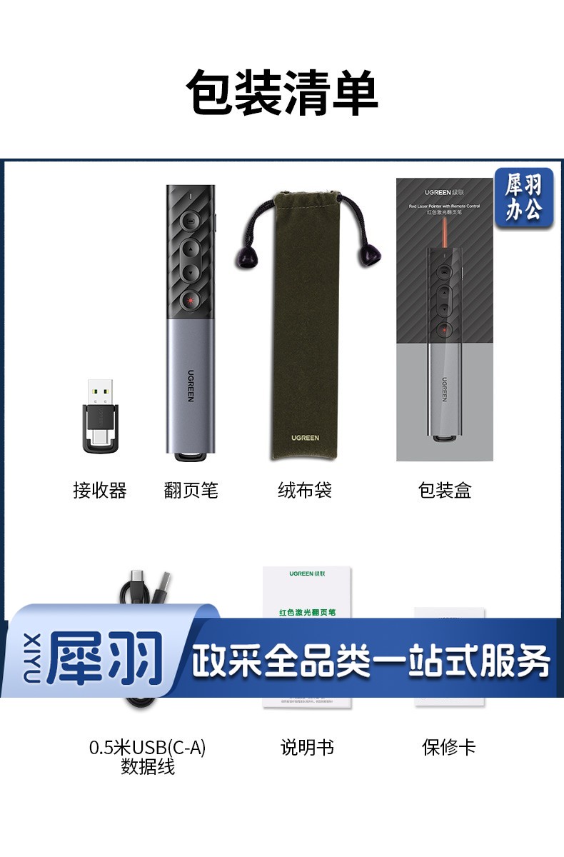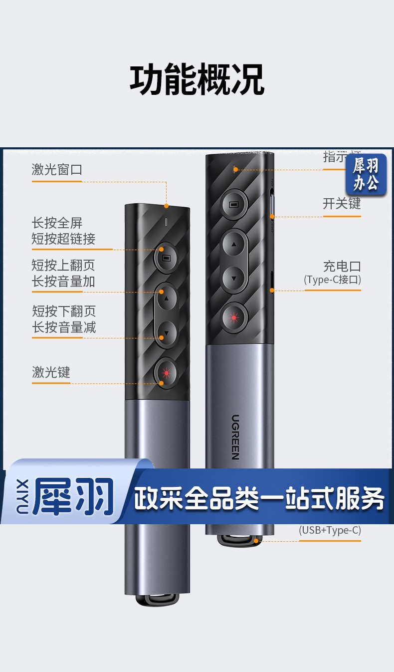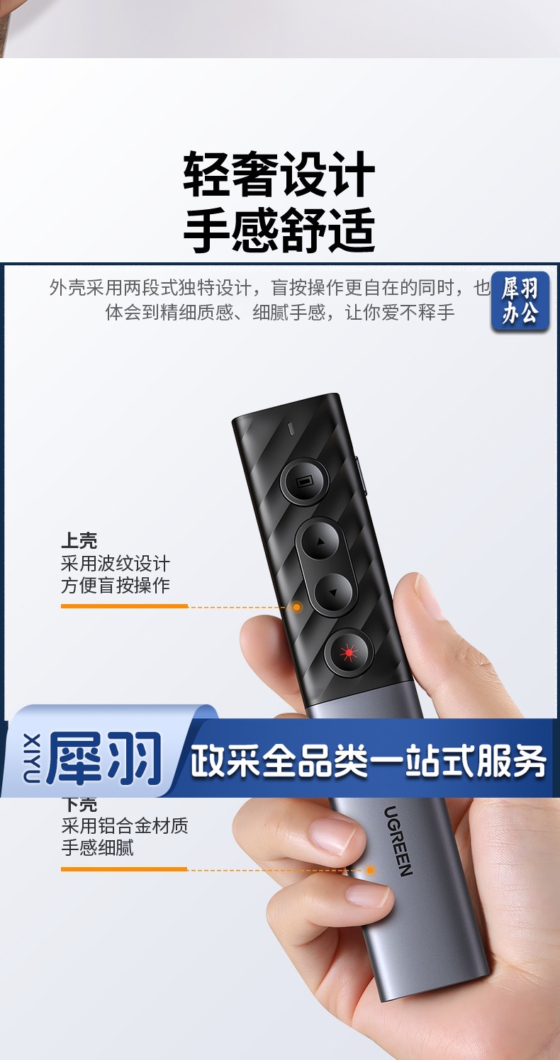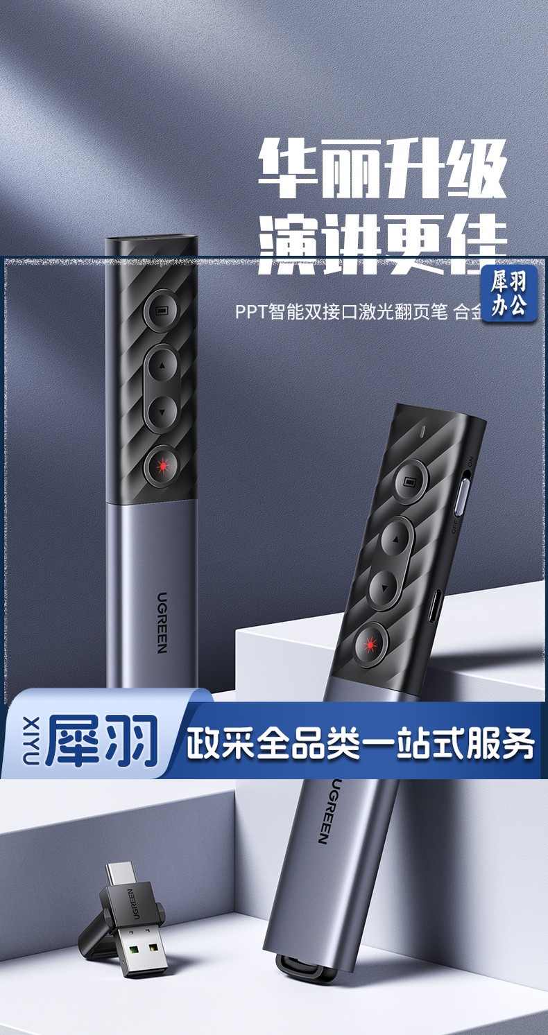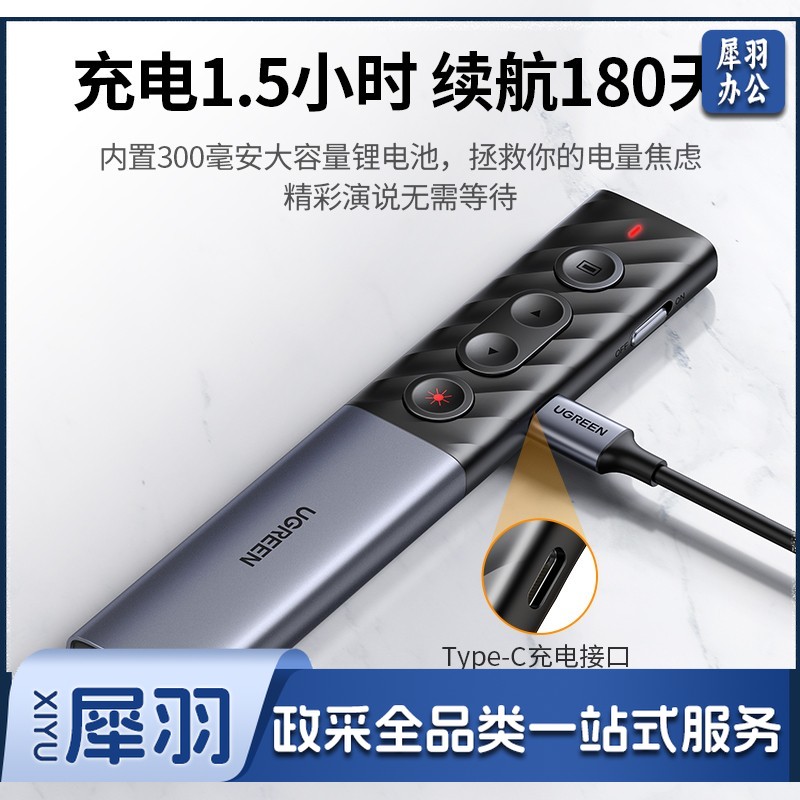 绿联(UGREEN)激光翻页笔 空中鼠标聚光灯可书写触控笔投影笔 适用LED液晶屏希沃电子白板多媒体演讲笔90415