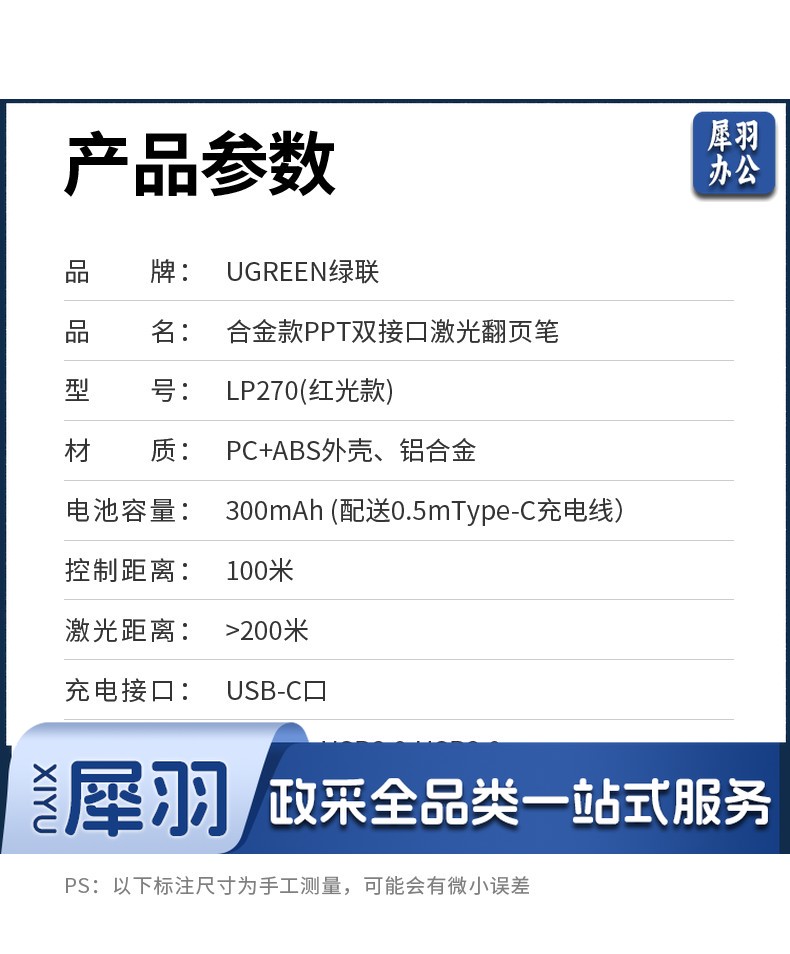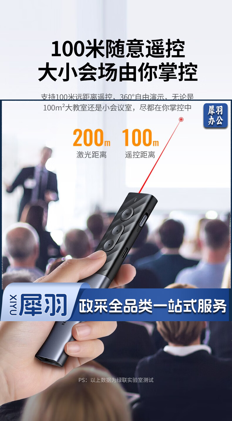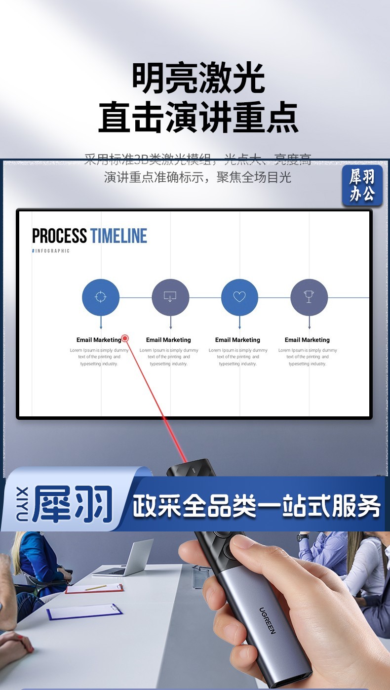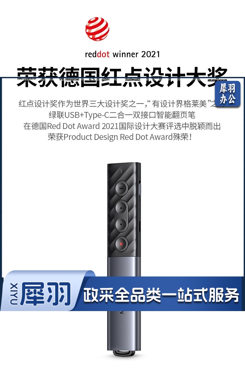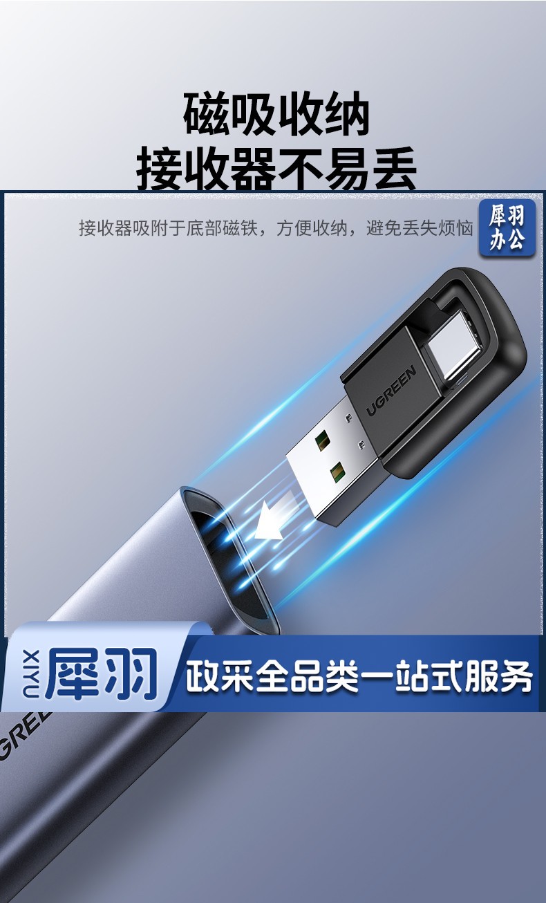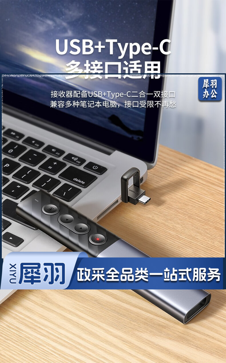绿联(UGREEN)激光翻页笔 空中鼠标聚光灯可书写触控笔投影笔 适用LED液晶屏希沃电子白板多媒体演讲笔90415