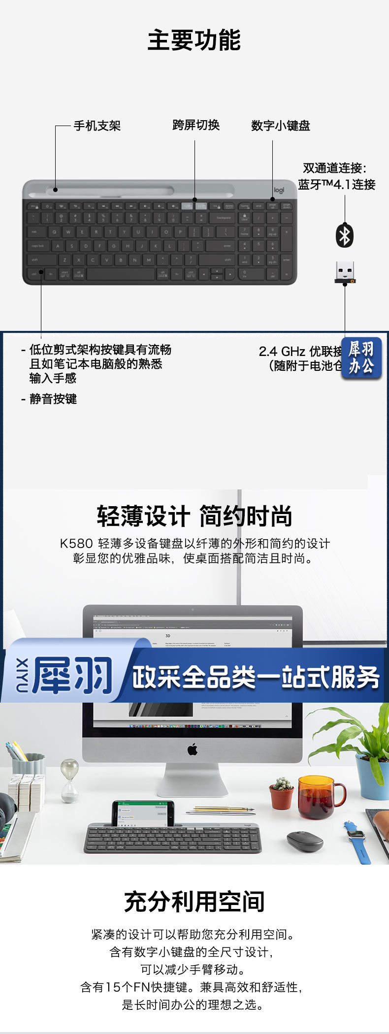 罗技(Logitech)K580 键盘 无线蓝牙键盘 办公键盘fycx-240228130627