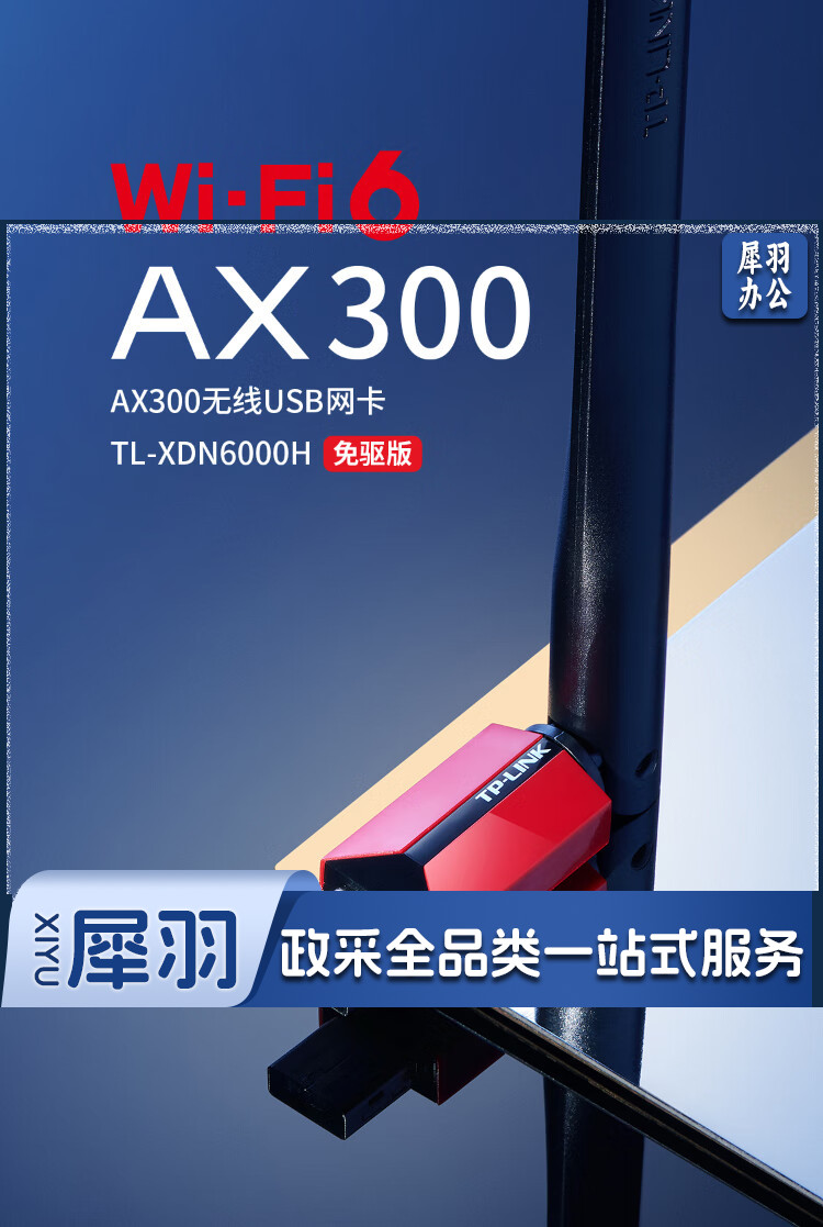 TP-LINK WiFi6免驱 usb无线网卡 外置高增益天线 台式电脑wifi接收器 AX300随身发射器 XDN6000H