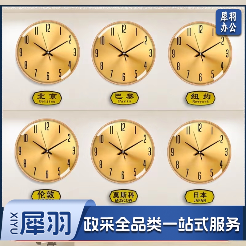 酒店挂墙钟 16英寸大堂前台金色挂钟 大厅石英钟表