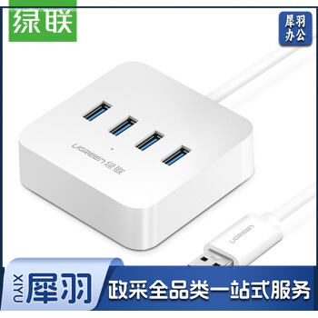 绿联 USB3.0分线器扩展坞 高速4口拓展坞HUB集线器 笔记本电脑一拖四多接口转换器接头延长线带供电口 1.5米