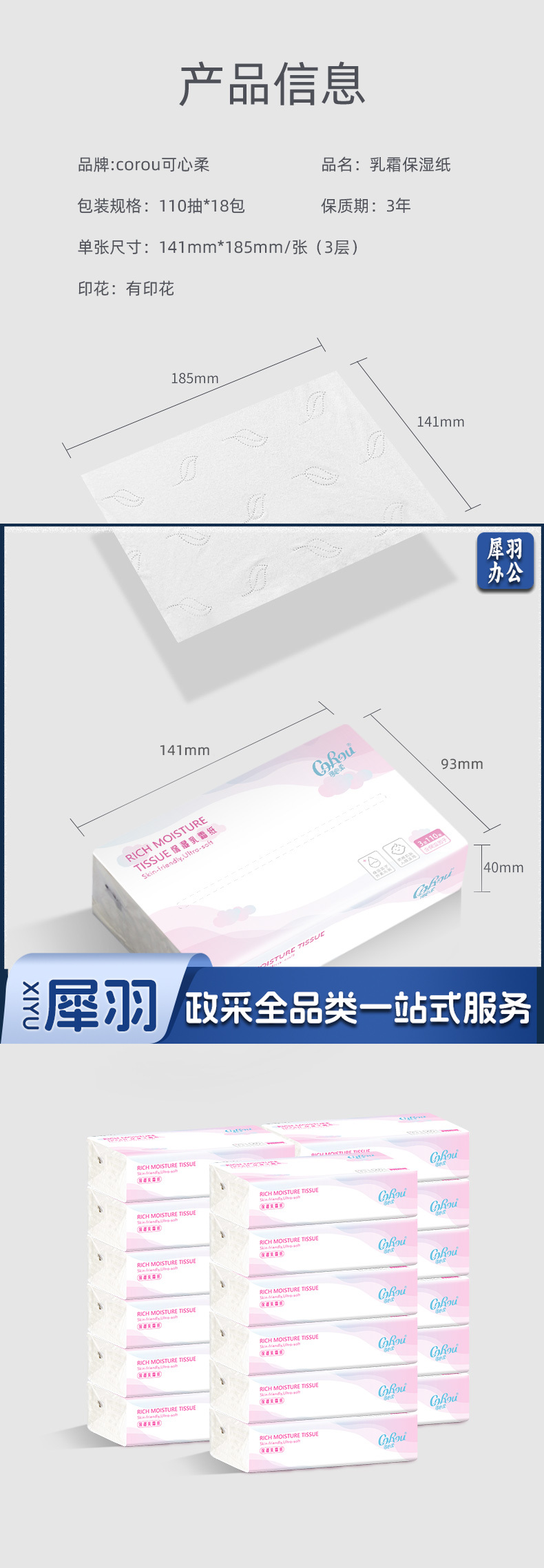 可心柔婴儿纸巾抽纸云柔巾保湿纸乳霜纸110抽18包整箱新生儿纸巾