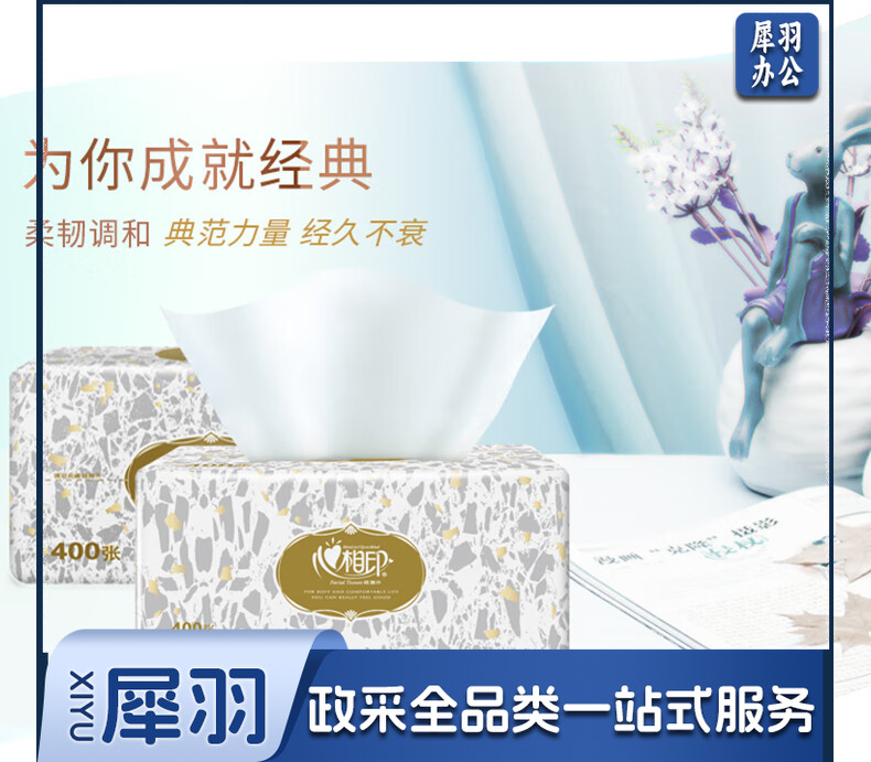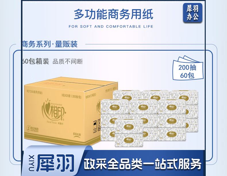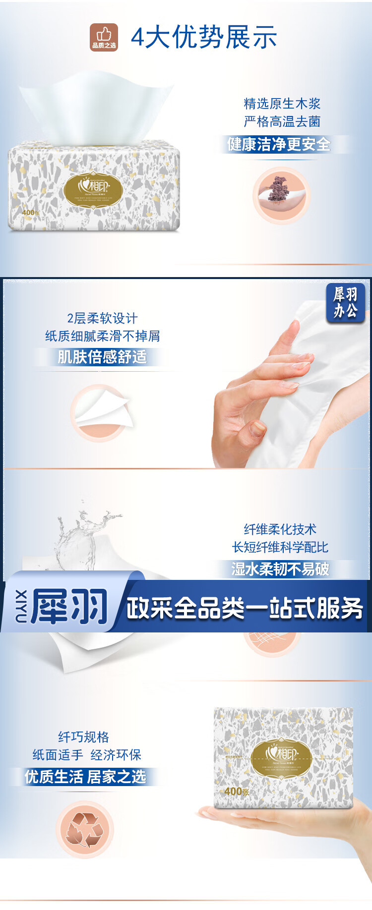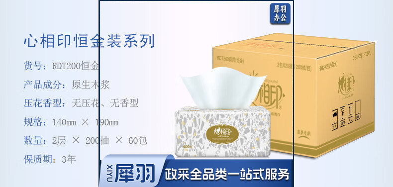 心相印 抽纸商务纸巾原生木浆2层200抽纸餐巾纸60包整箱 RDT200